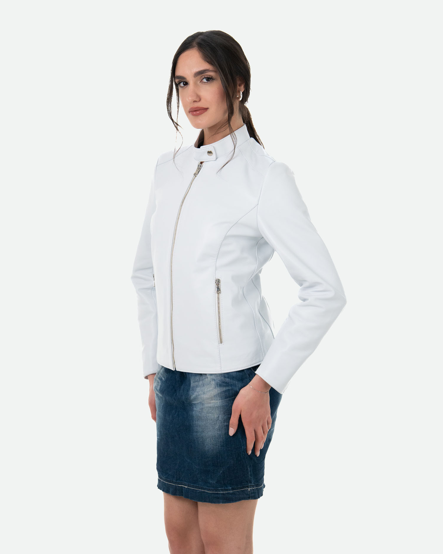 Made from 100% genuine leather and finished with meticulous Italian tailoring, this women's leather jacket is designed to accompany you from morning to evening, from casual chic looks to more refined outfits.