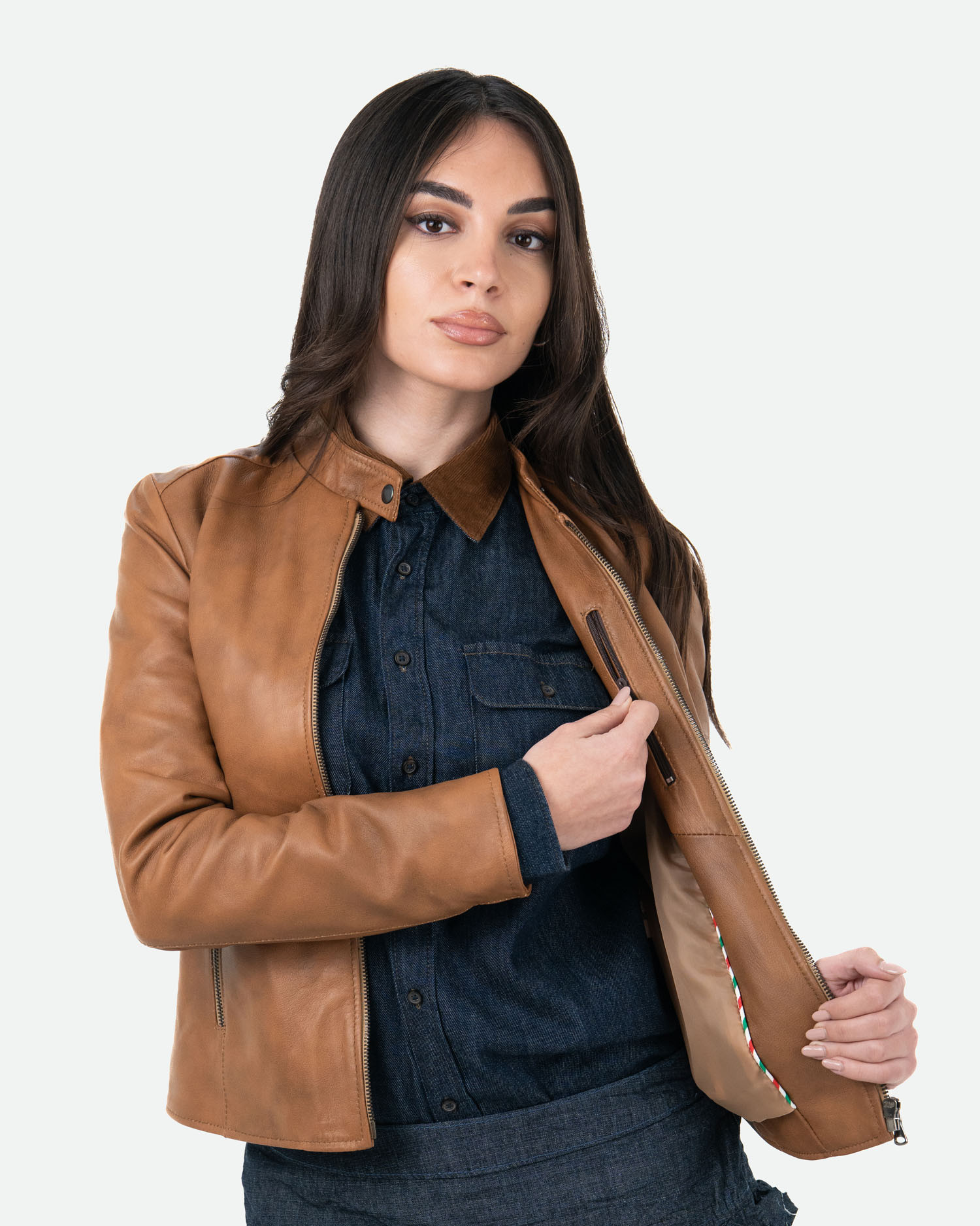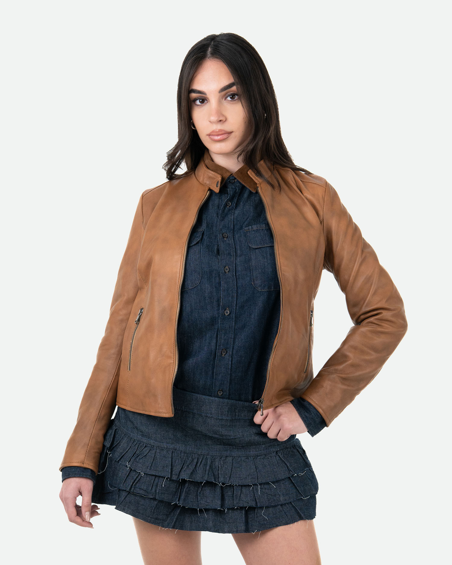 Made from 100% genuine leather and finished with meticulous Italian tailoring, this women's leather jacket is designed to accompany you from morning to evening, from casual chic looks to more refined outfits.