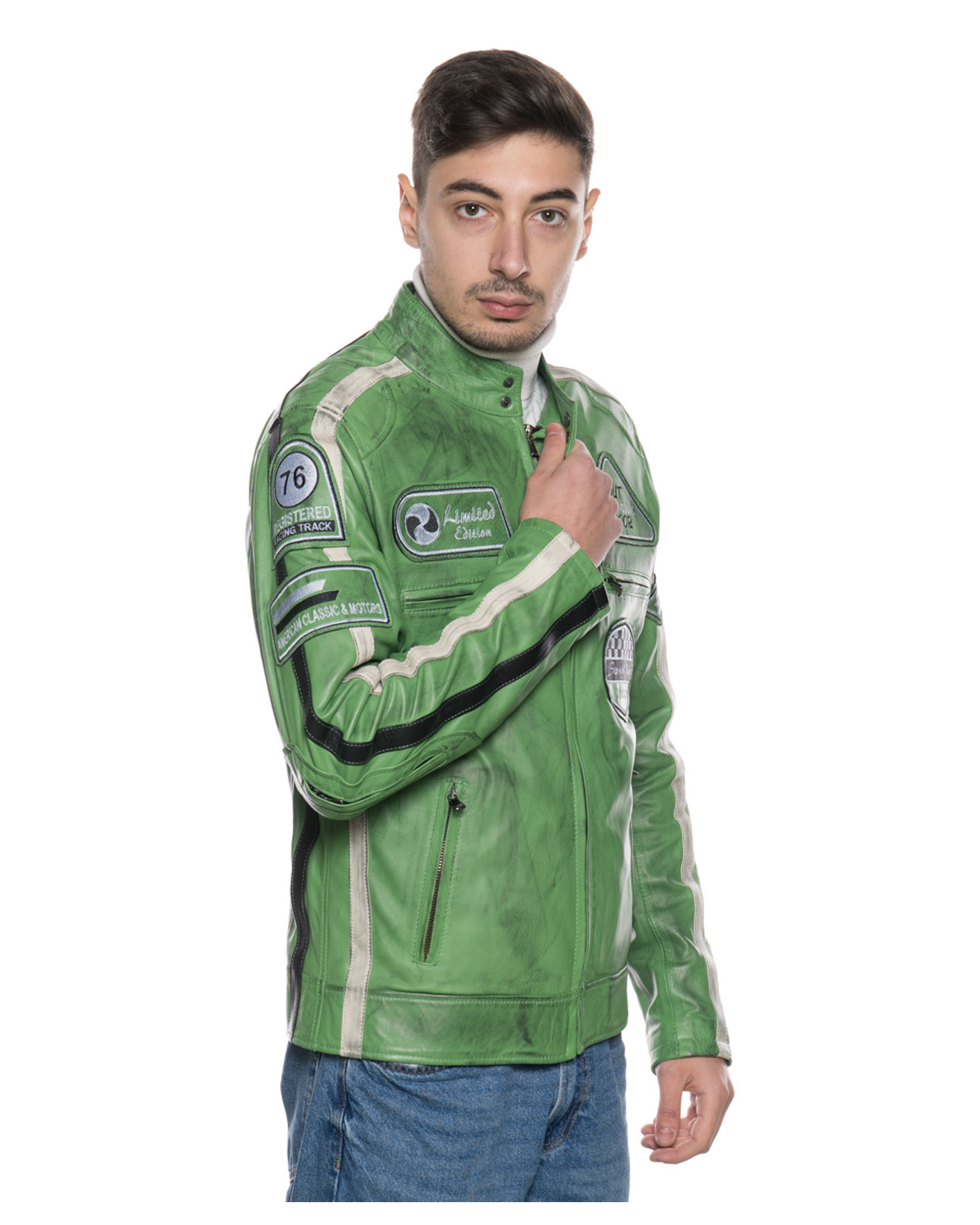 Axel - Green Kawasaki Buffed Leather Biker Jacket