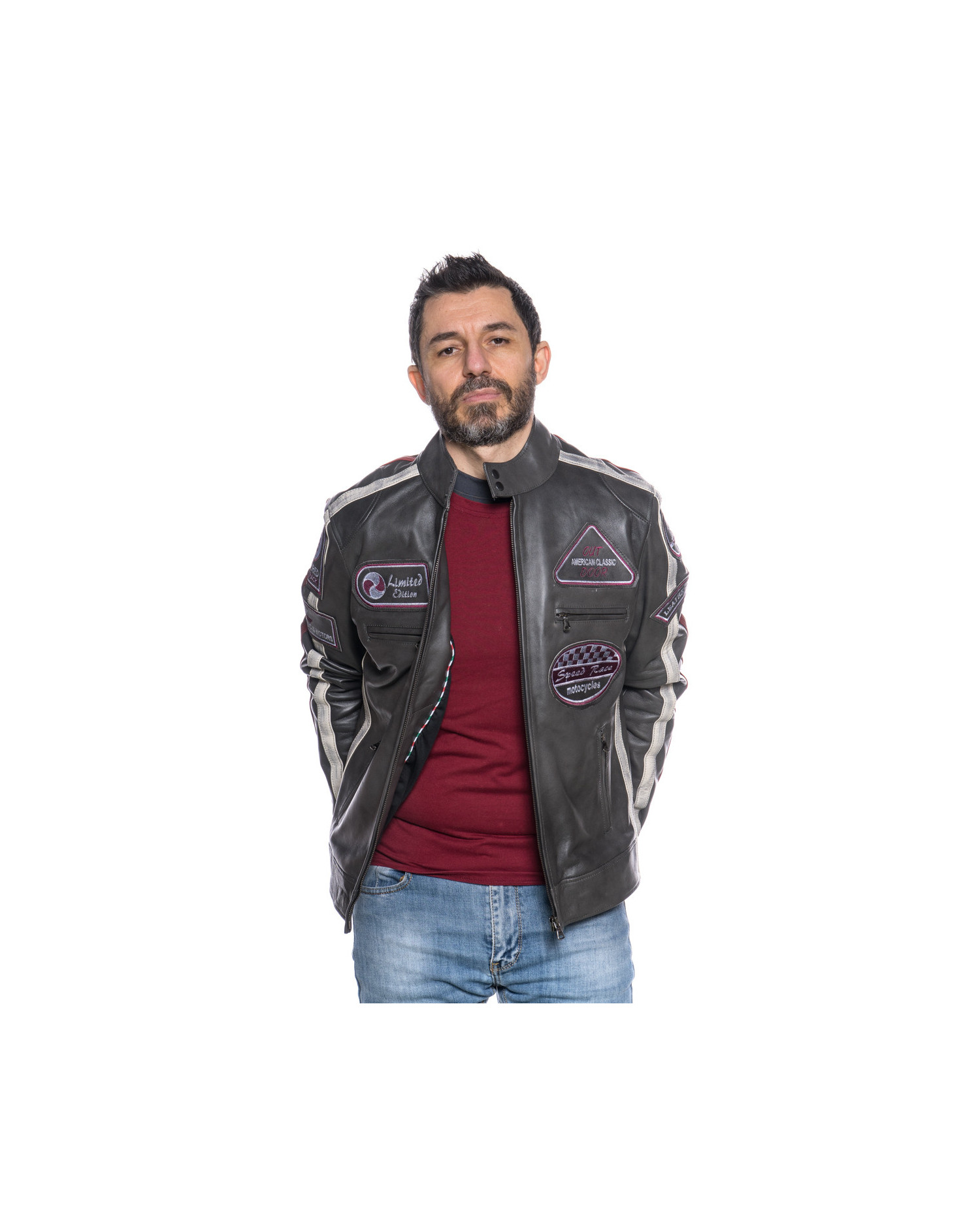 Genuine leather is a natural material obtained from the processing of animal hides, selected and treated to ensure strength, softness, and durability. Each genuine leather garment is unique, thanks to its natural grain and shades, which attest to its authenticity. Over the years, leather adapts and transforms, acquiring a distinctive patina that enhances its charm. It is synonymous with quality, elegance, and craftsmanship.