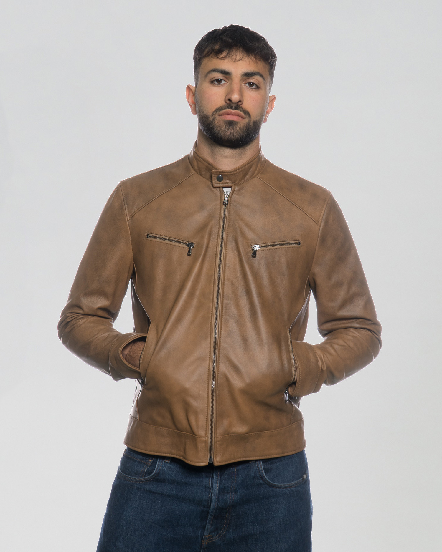 The front and wrist zippers not only define the style but also provide versatility, allowing easy layering and adjustment. The U06 jacket is ideal for anyone looking for a stylish, practical, and contemporary men's leather jacket.