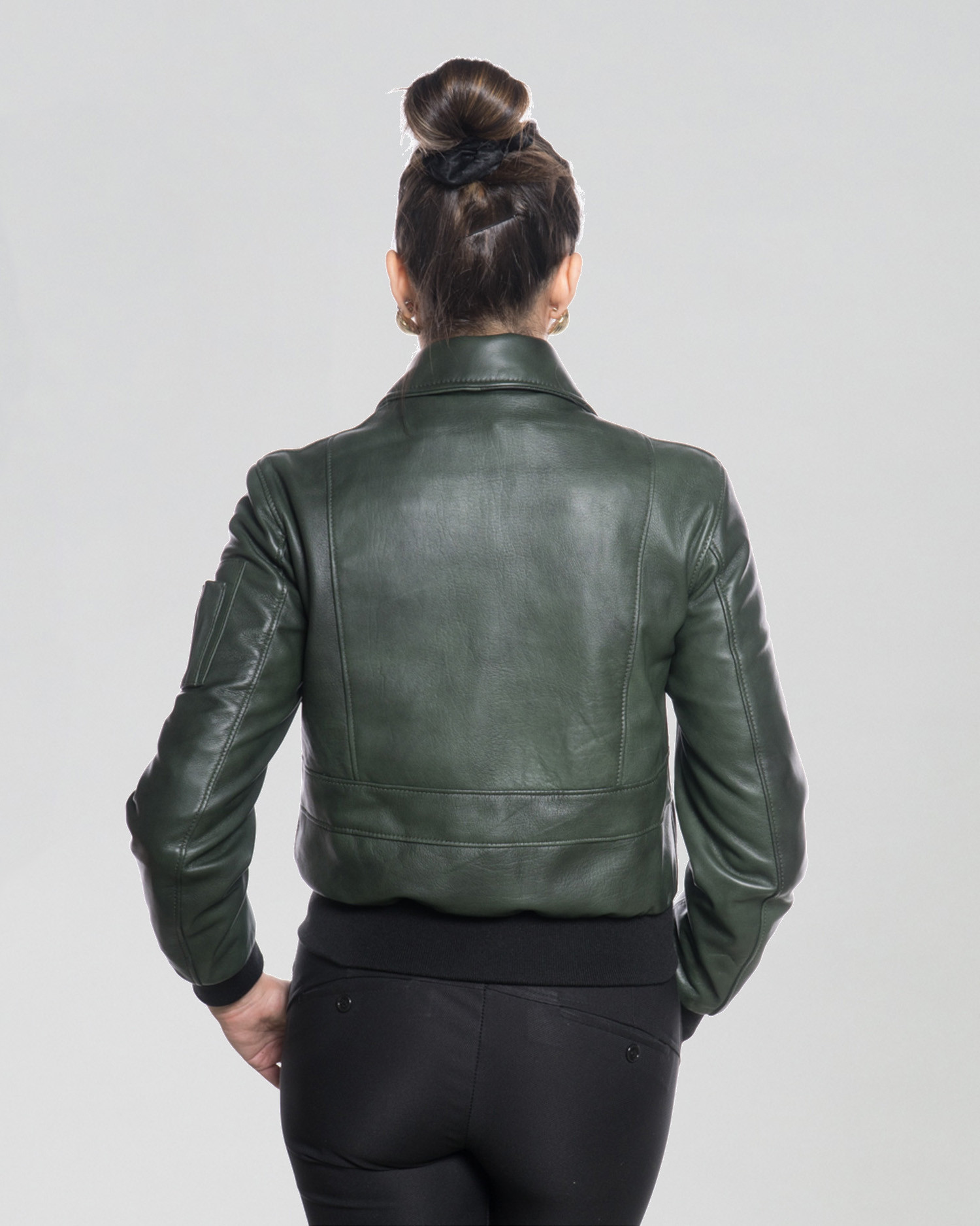 Livia - Green Leather Bomber Jacket