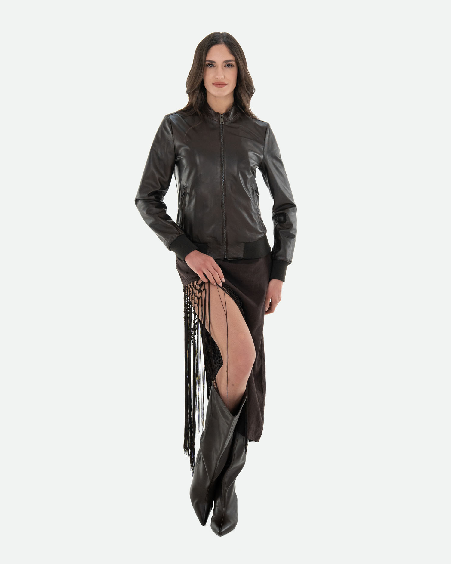 A versatile and refined leather outerwear, ideal for pairing with casual or more sophisticated looks, combining technical functionality with contemporary allure.