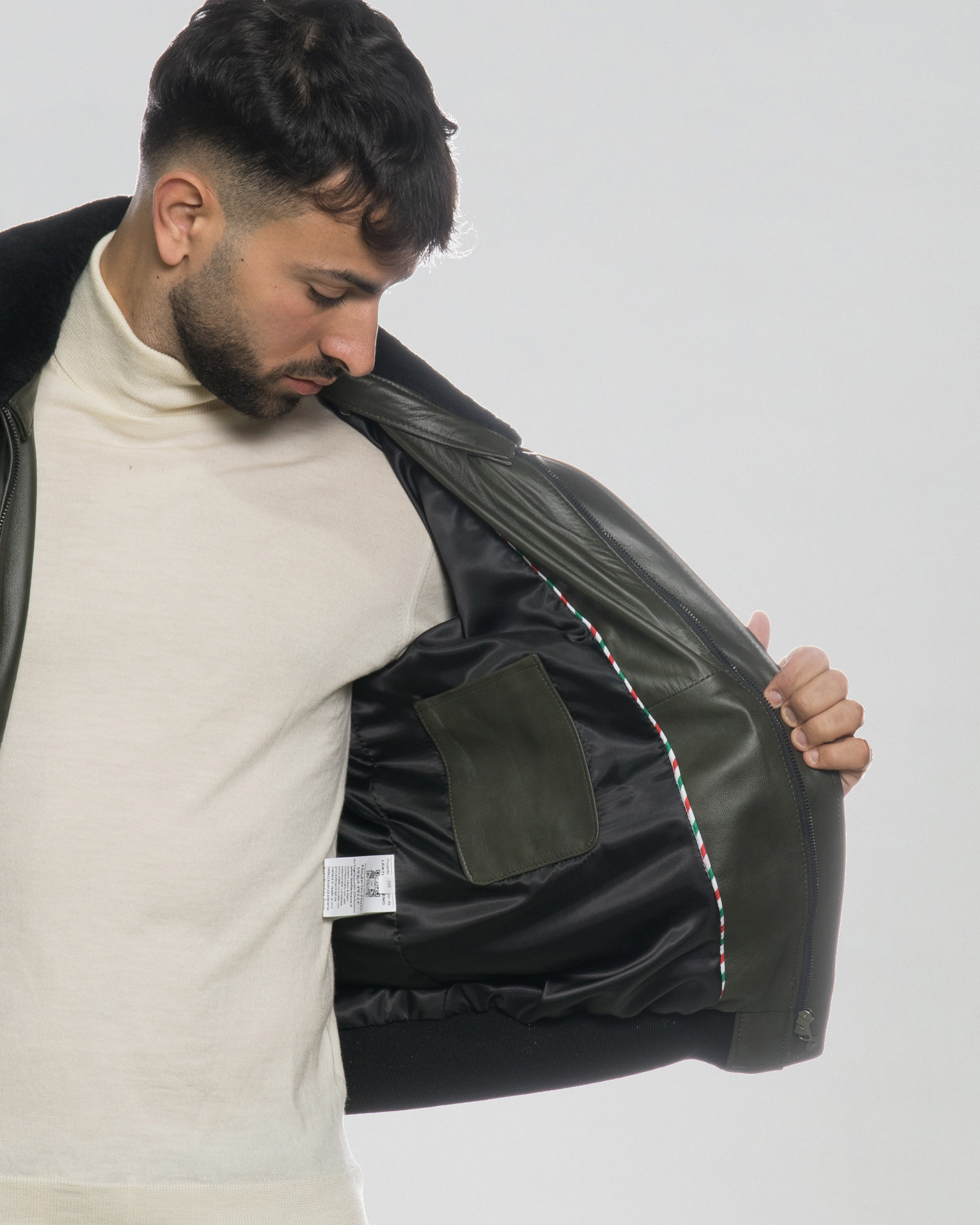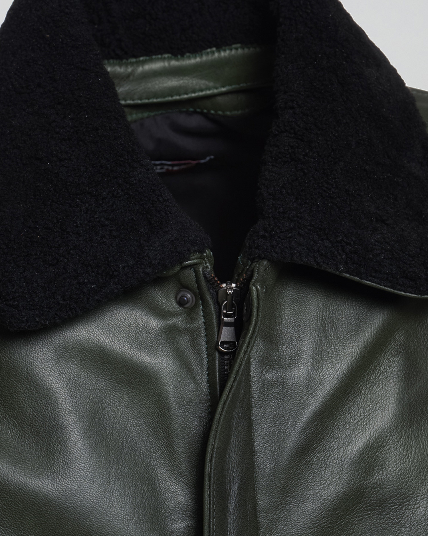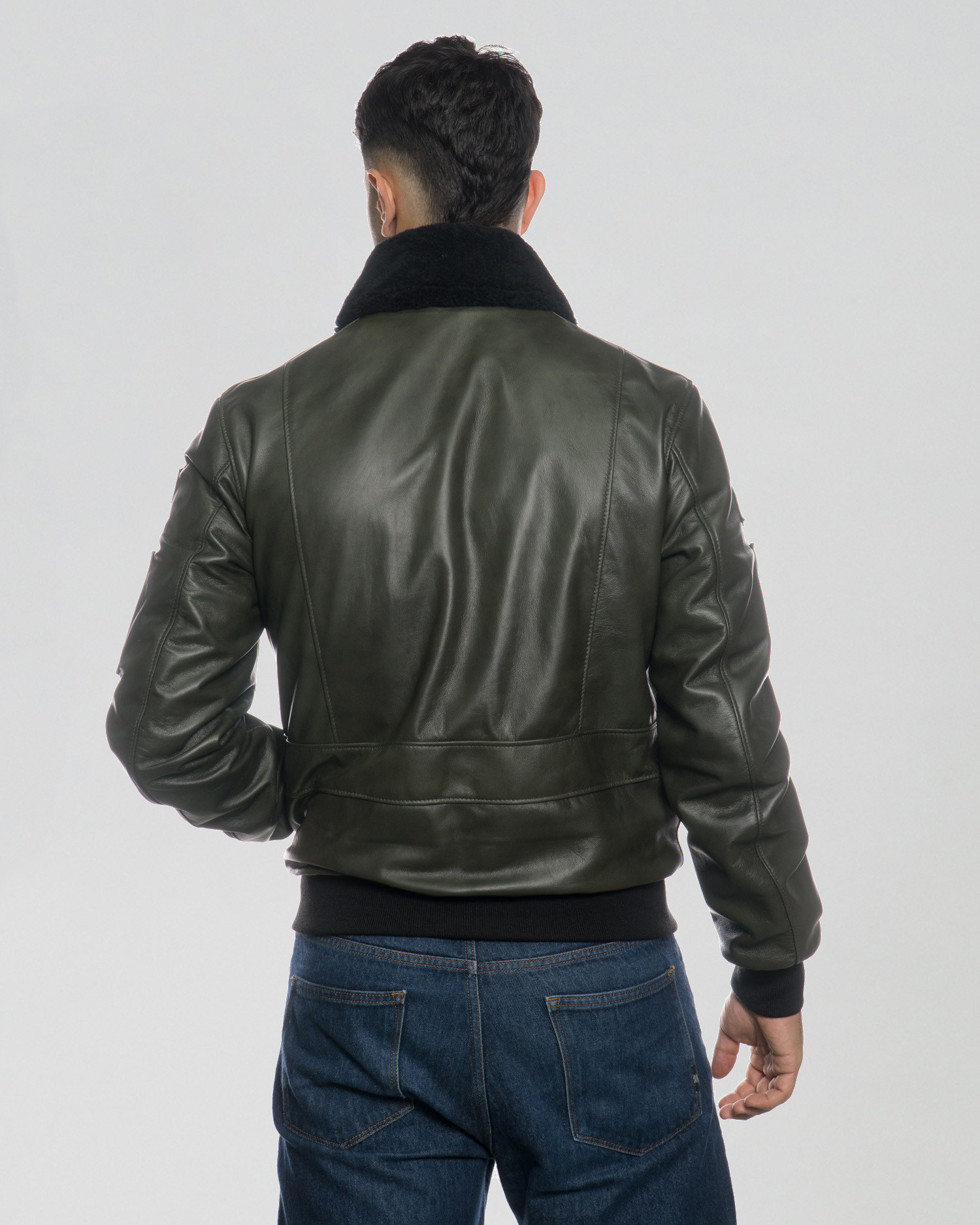 Dante - Green Leather and Shearling Bomber Jacket