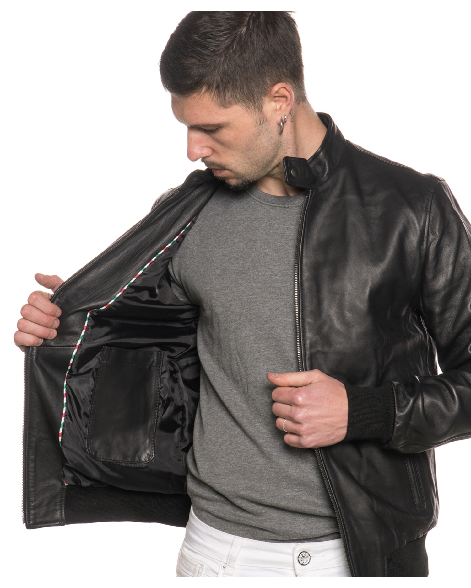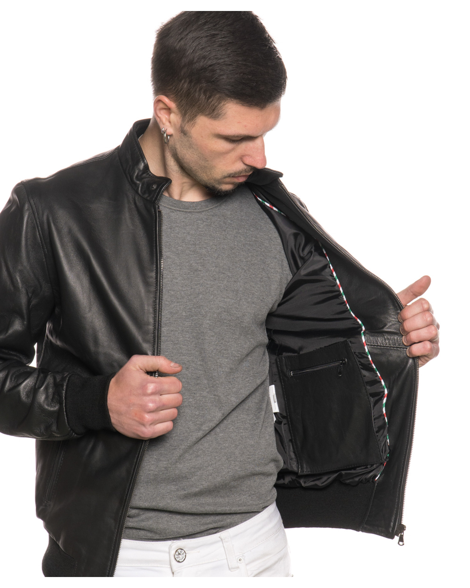The Napoli men's leather bomber jacket is the ideal choice for those seeking the perfect balance between modern style and everyday practicality. Clean lines and essential details define a versatile piece, perfect for accompanying you at every moment of the day.