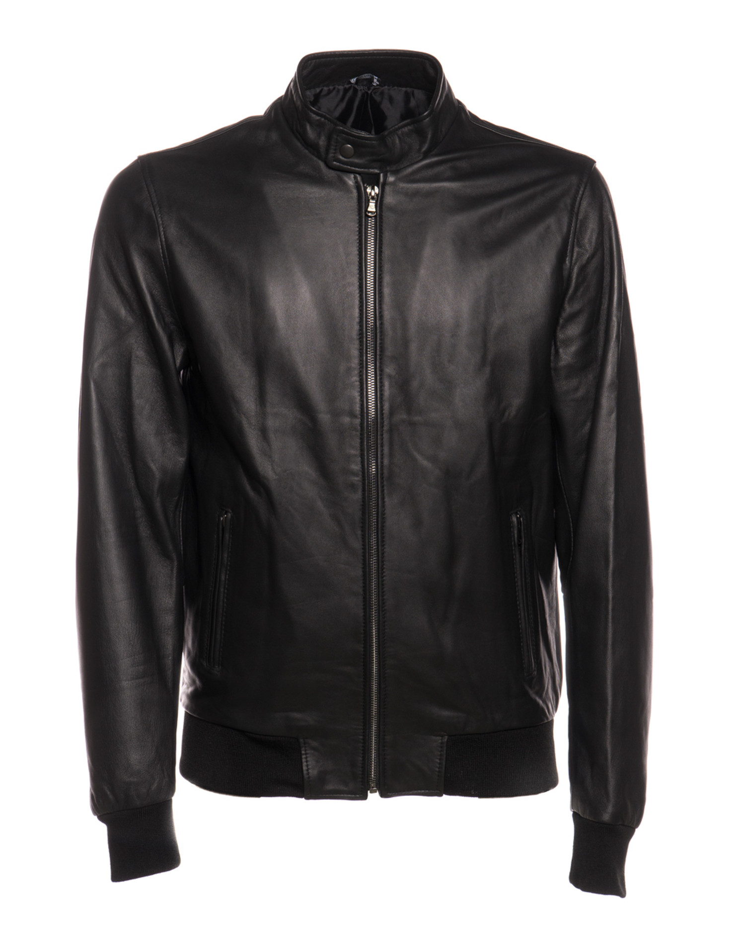 Men's leather bomber jacket with elasticated cuffs and hem.