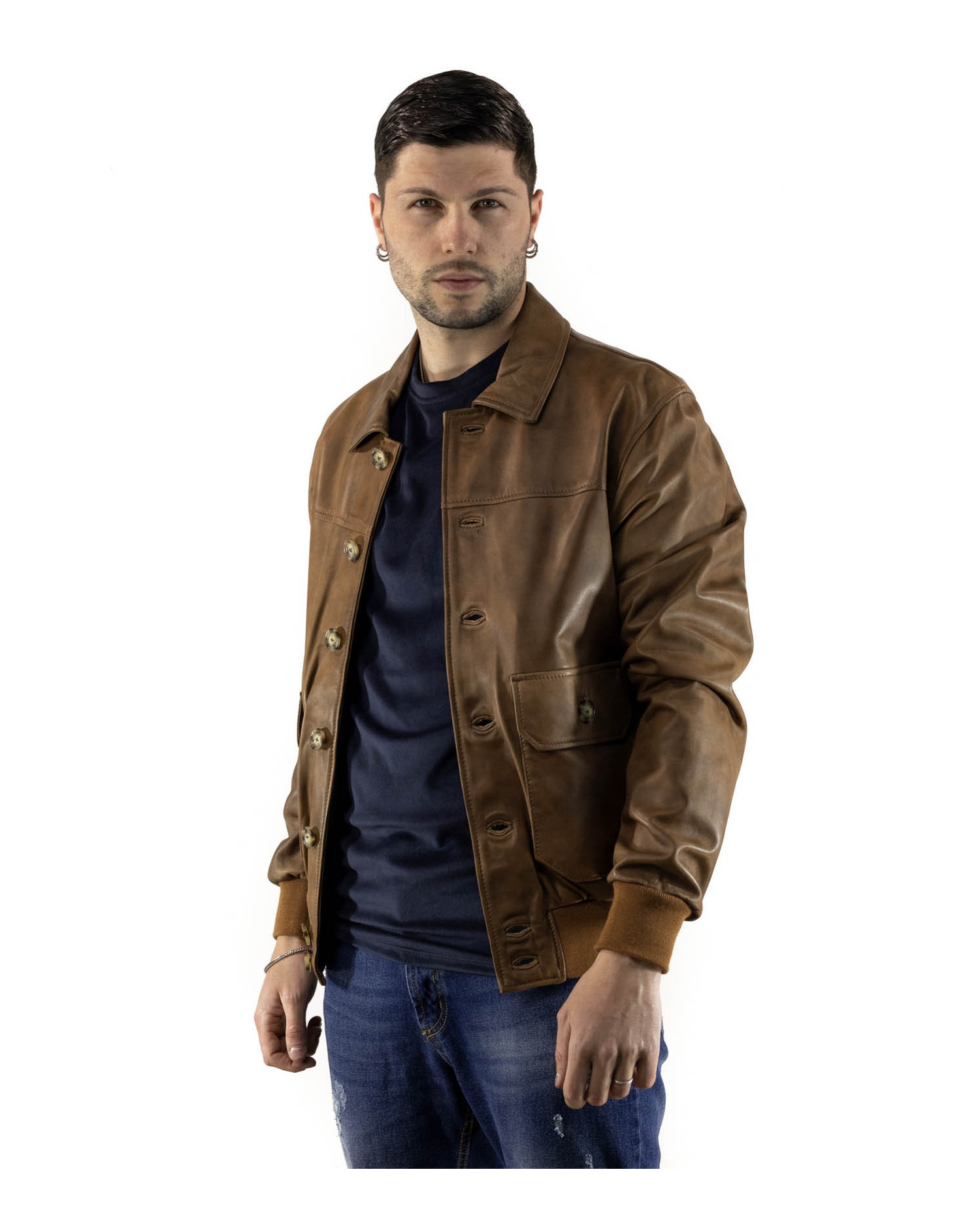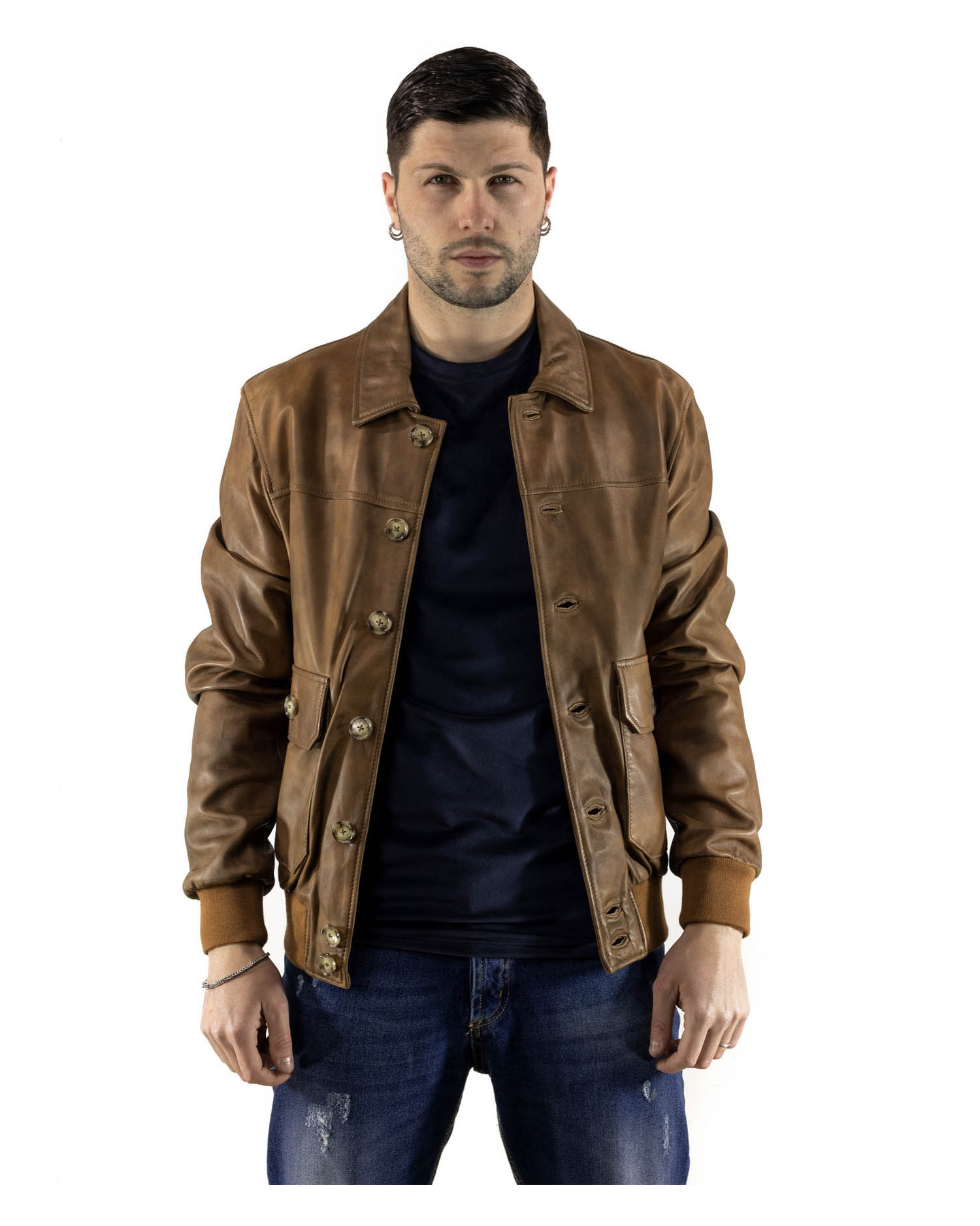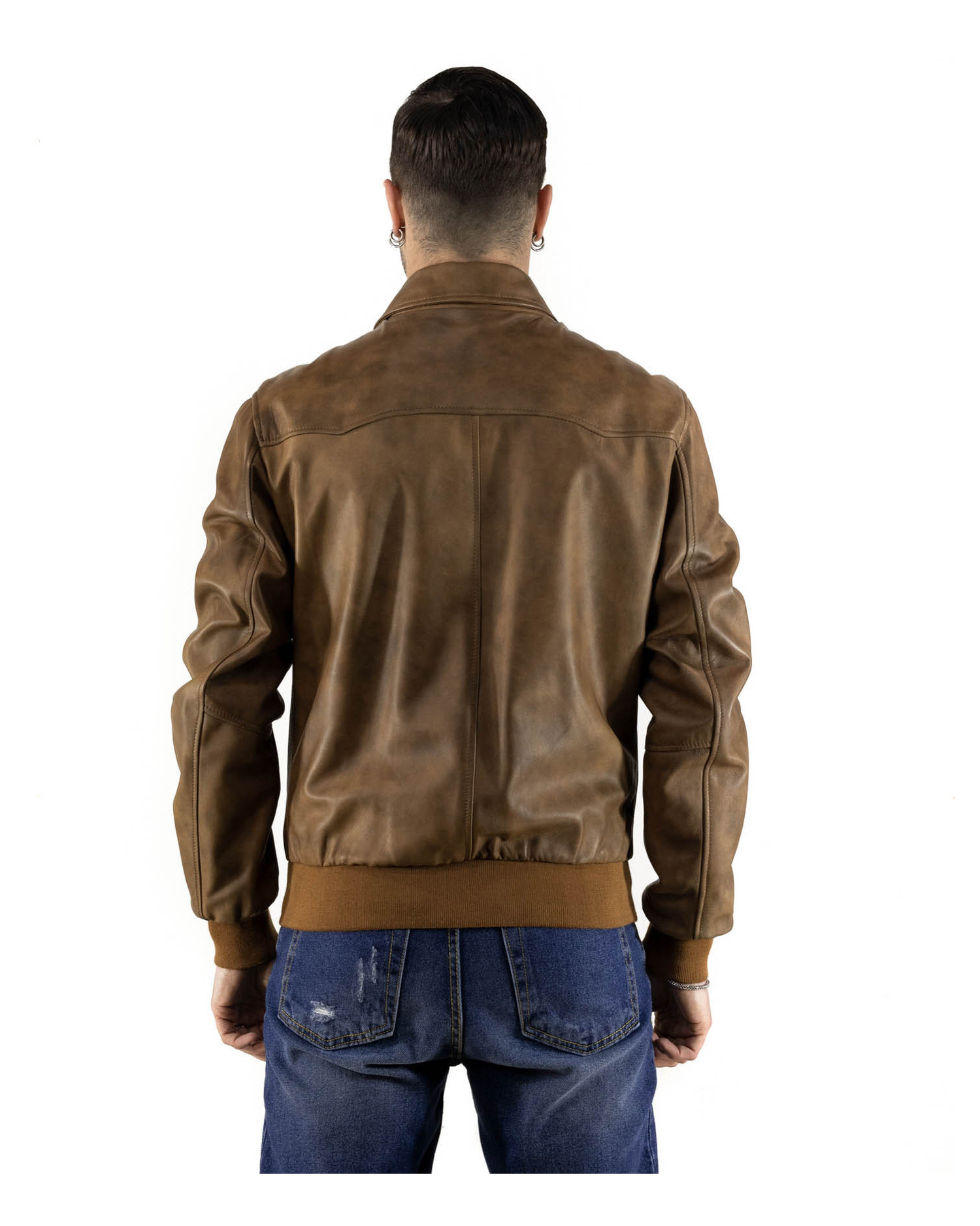 The result is a versatile and refined men’s leather bomber jacket, perfect for completing casual or smart-casual looks with a distinctive edge. A piece designed for those seeking quality, style, and durability in a single design solution.