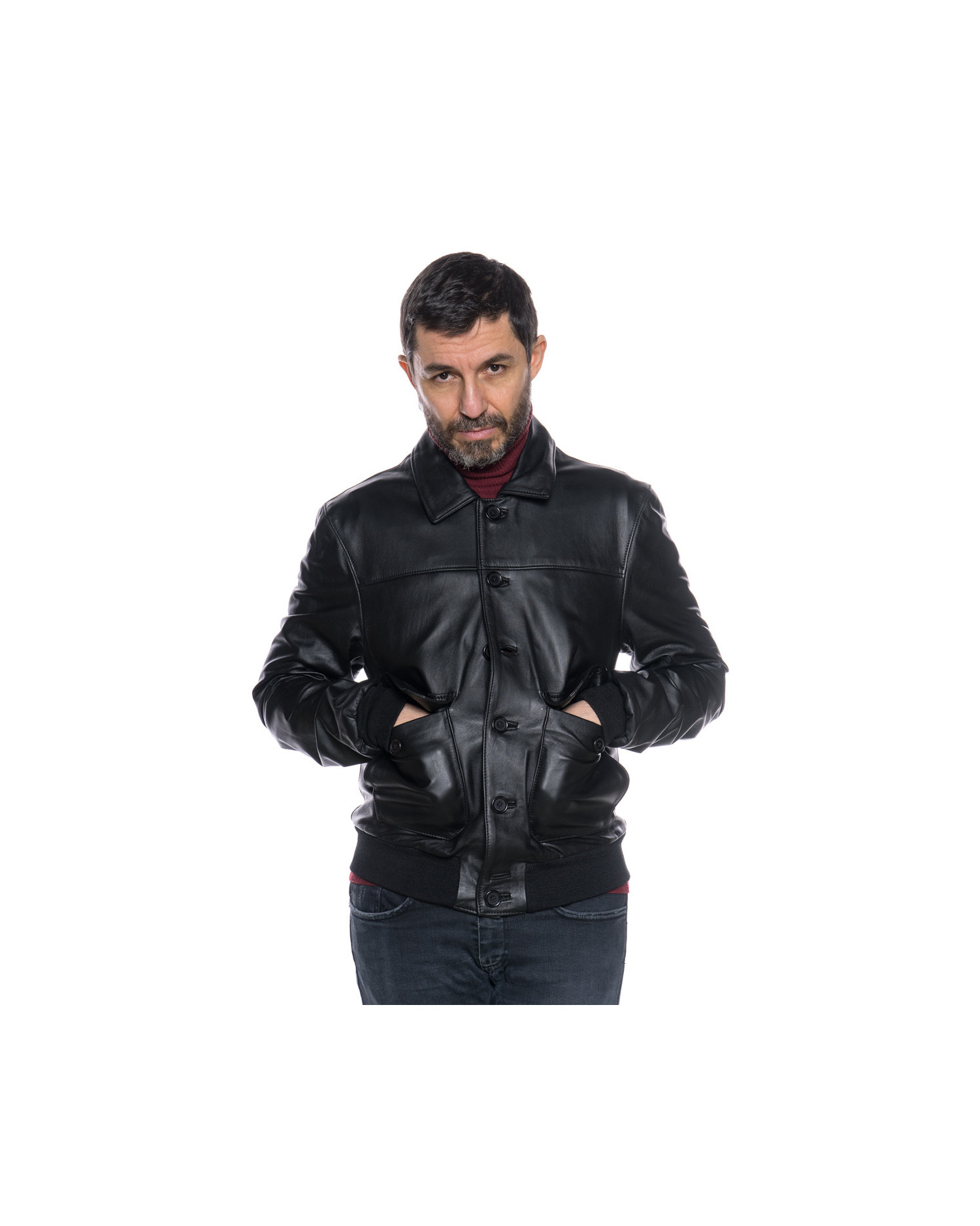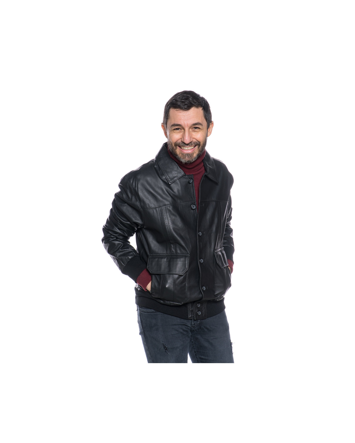 Crafted from genuine lambskin leather, this men’s leather bomber stands out for its natural softness and its ability to adapt to the body over time, becoming increasingly personal. The design is clean and functional: the shirt collar adds character, while the button fastening offers adjustable and practical wearability in every season.
