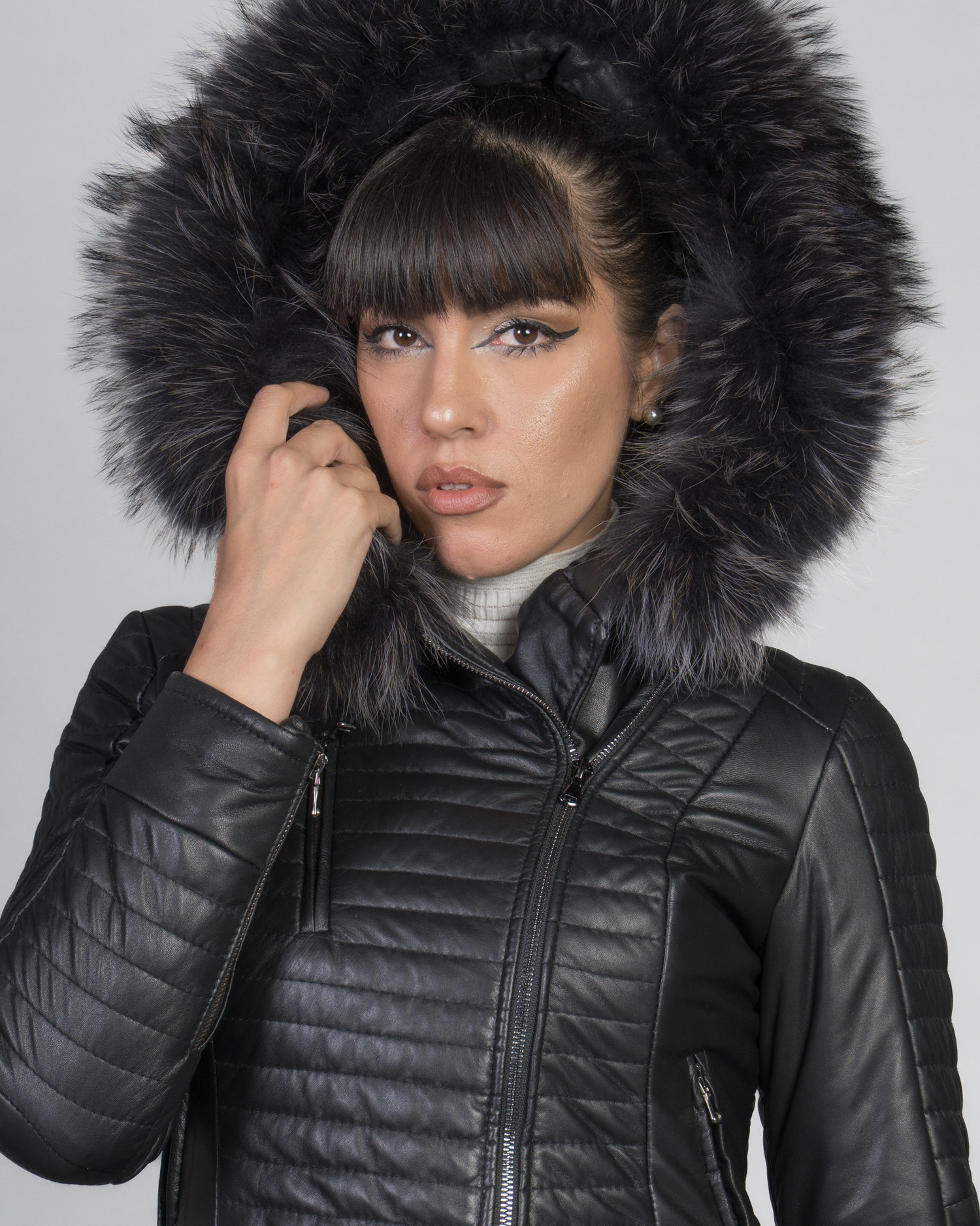 The Lasmara model is a women's down jacket with hood surrounded of Murmasky fur and cross zip closure.