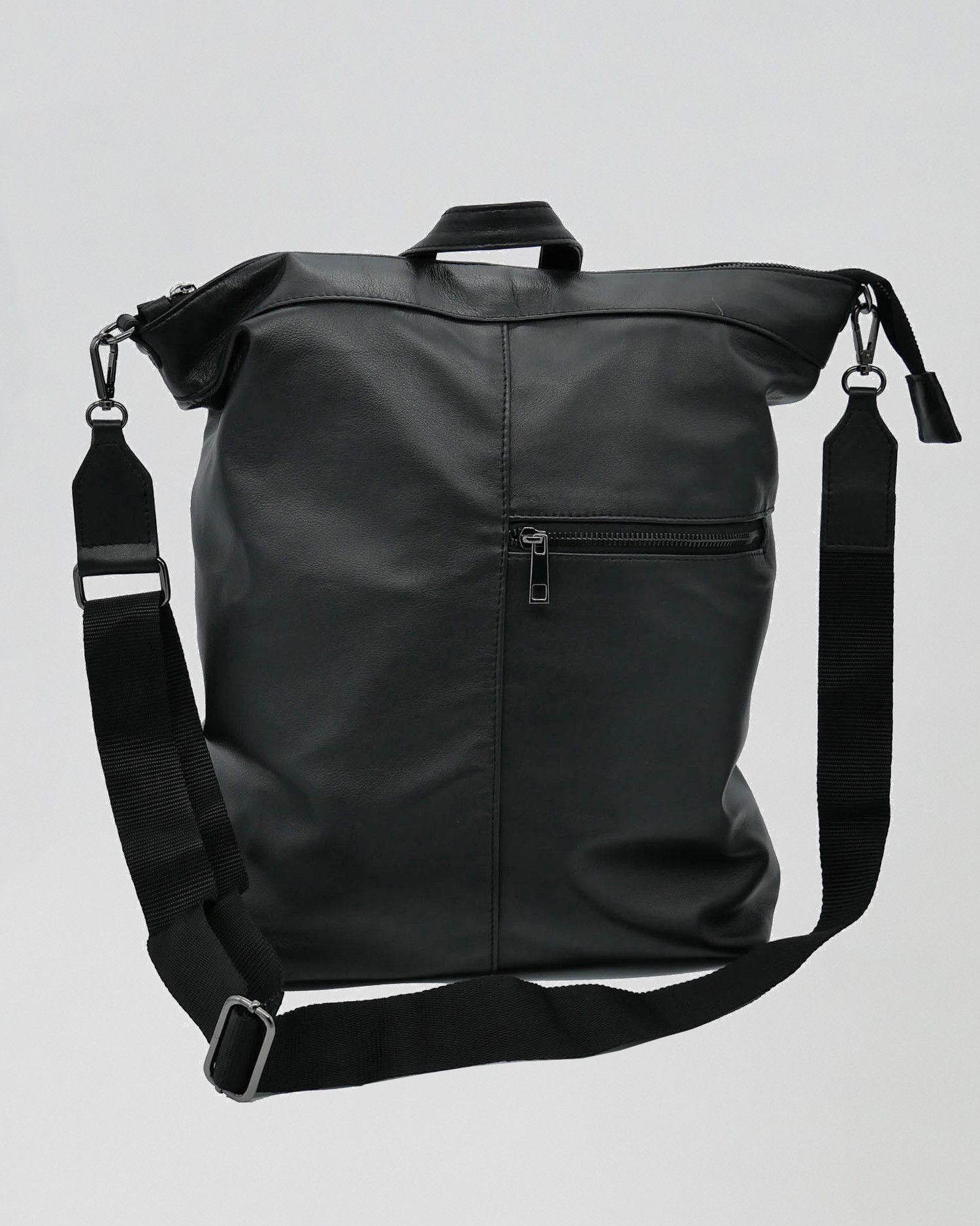 Leather shoulder bag that can also be worn as a backpack thanks to the adjustable shoulder strap.