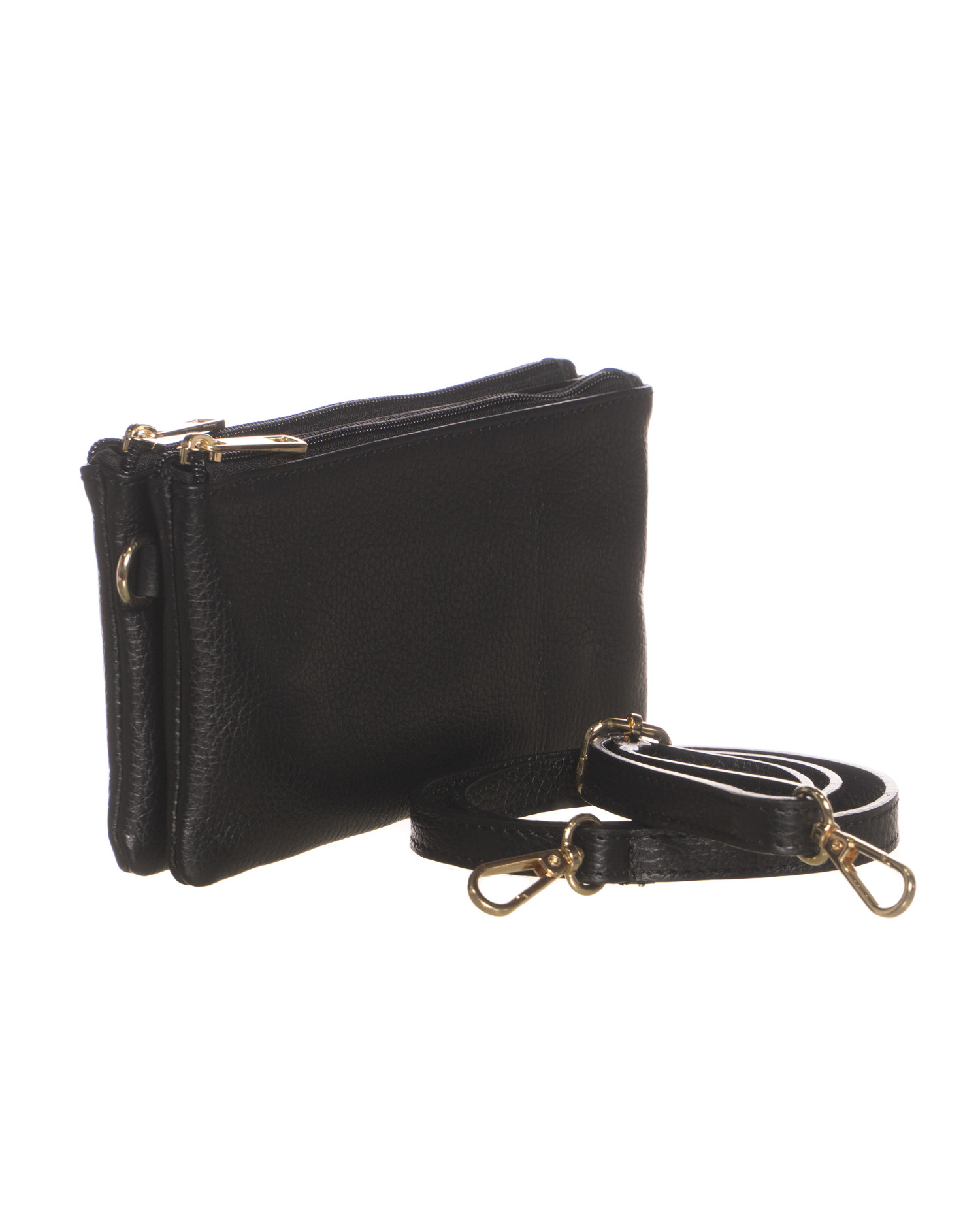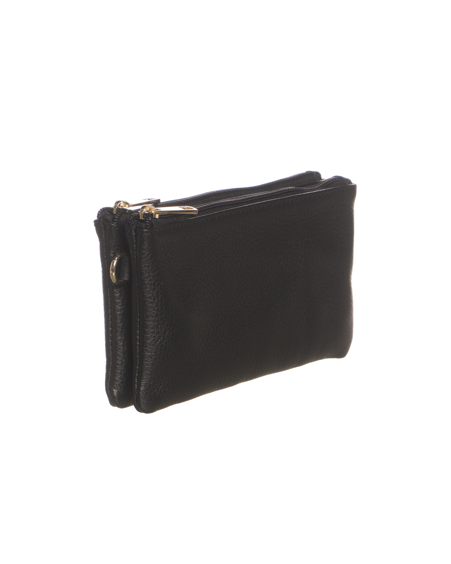 Crafted from genuine grained leather, durable and soft to the touch, it maintains a structured and sophisticated silhouette. The gold-tone zip closure keeps your essentials secure, while the front metallic detail adds a bright, contemporary touch.