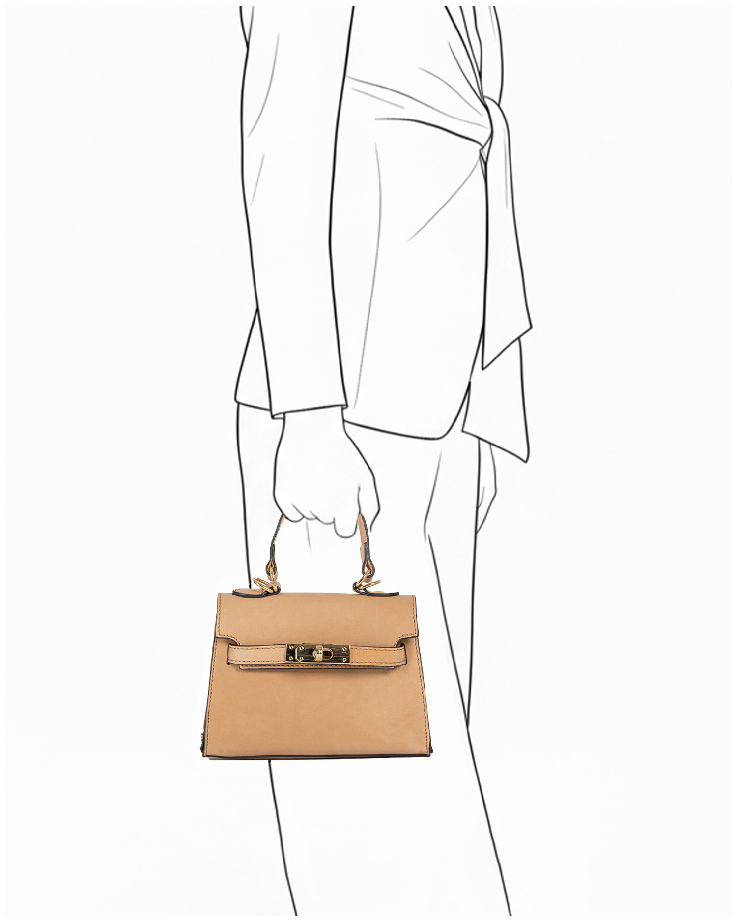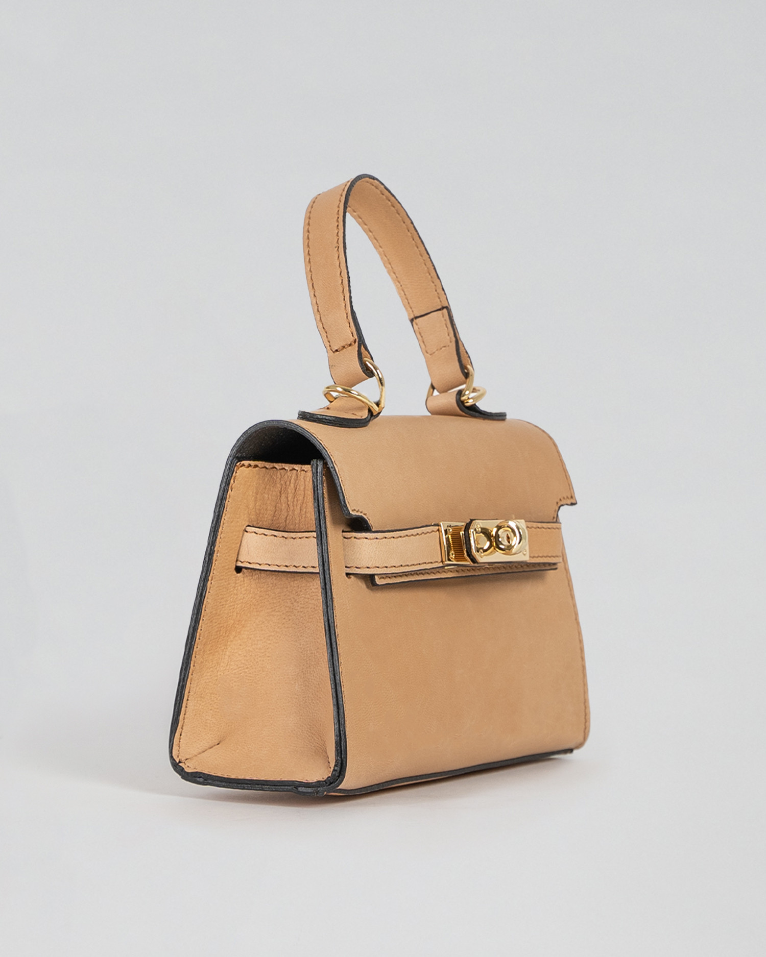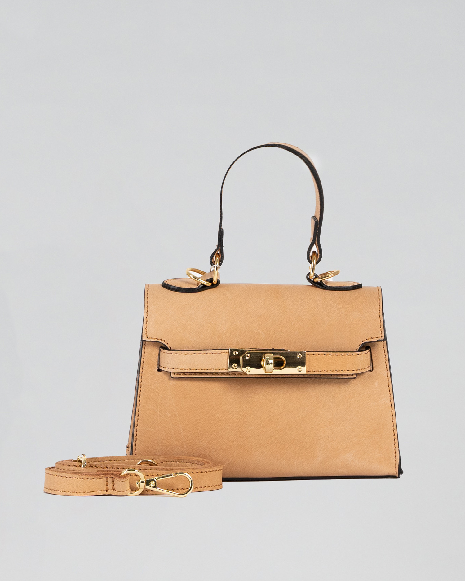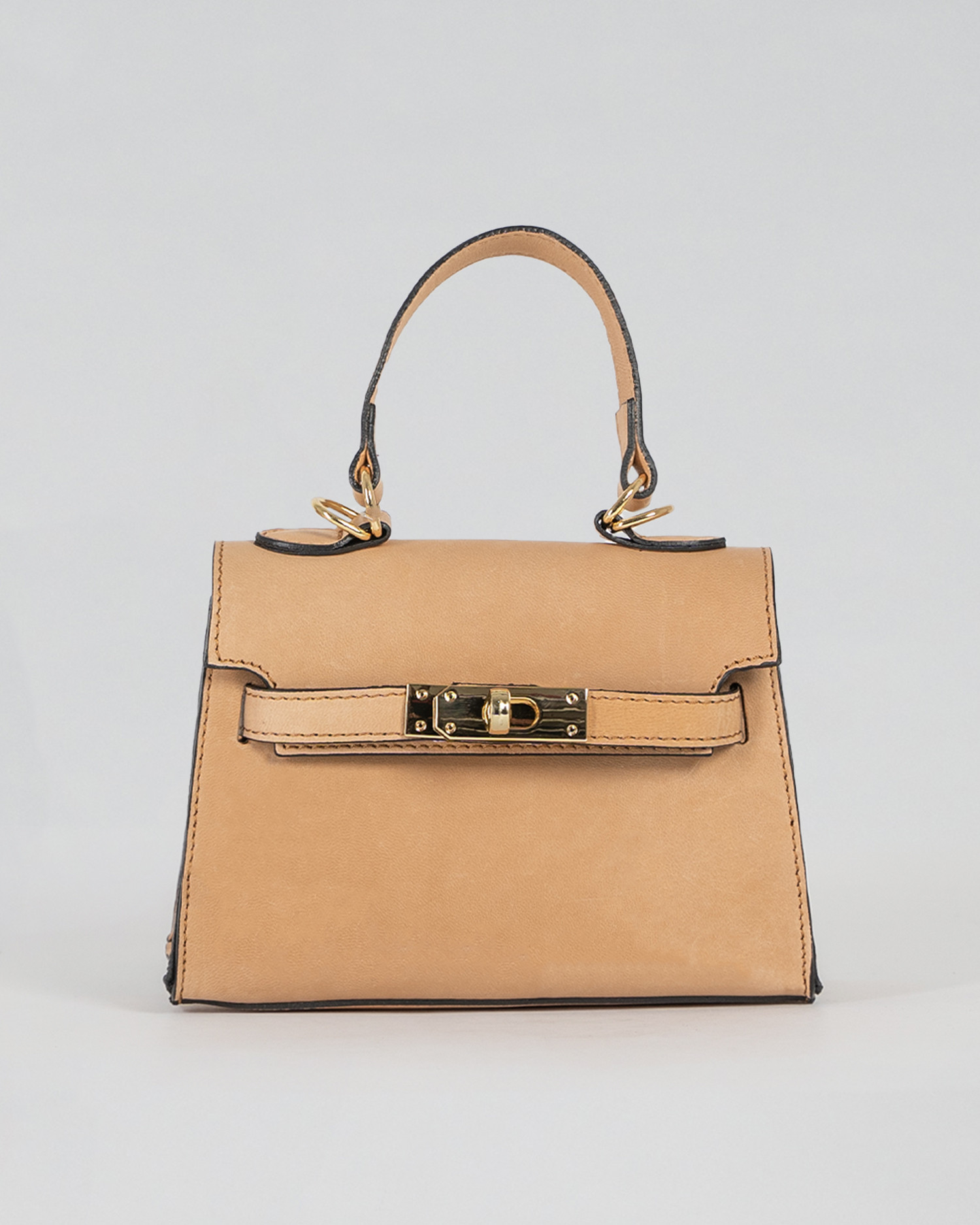 Crafted from high-quality taupe genuine leather, Giada combines durability and refinement. The reinforced base preserves its silhouette over time, while the turn-lock closure ensures both protection and practicality. Inside, a spacious main compartment and a dedicated phone pocket provide optimal organization for your essentials.