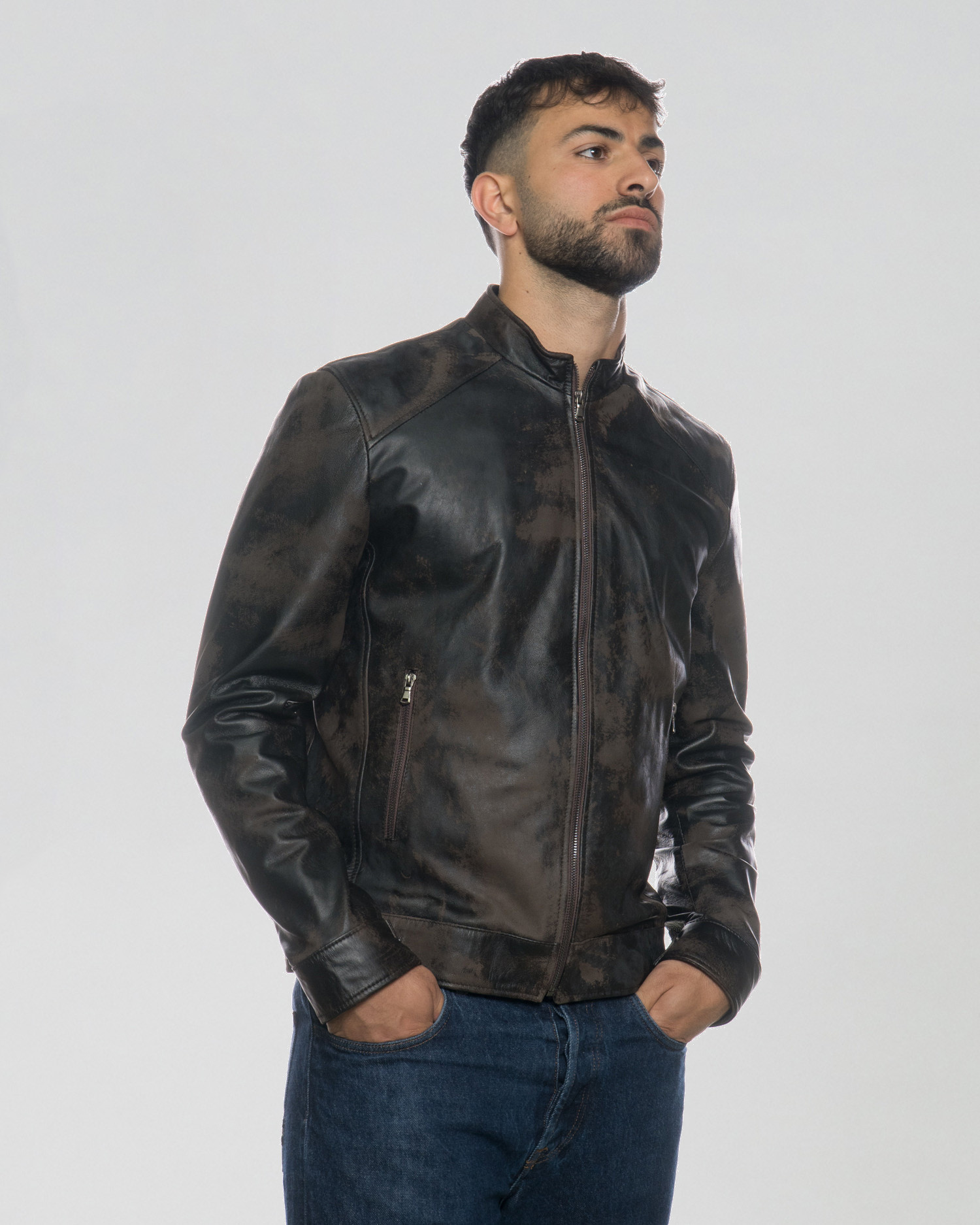U08 - Dark Brown Leather Jacket with Scratched Effect