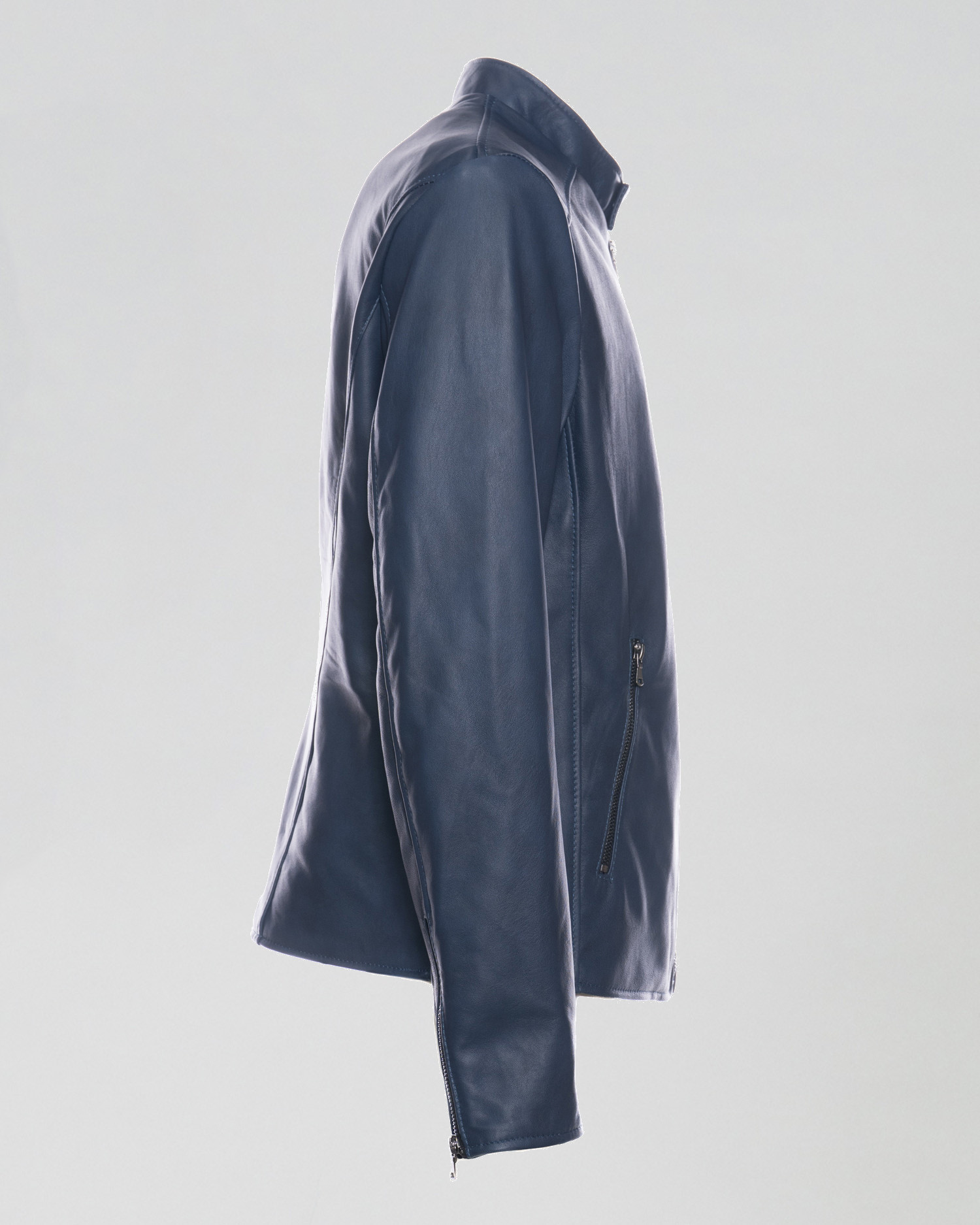 The low collar and zip cuffs enhance the modern line of the jacket, making it easy to pair with accessories and other clothing. The front metal zipper provides practicality and reliability, while the zippered pockets protect essential items, complemented by an internal pocket for added security.