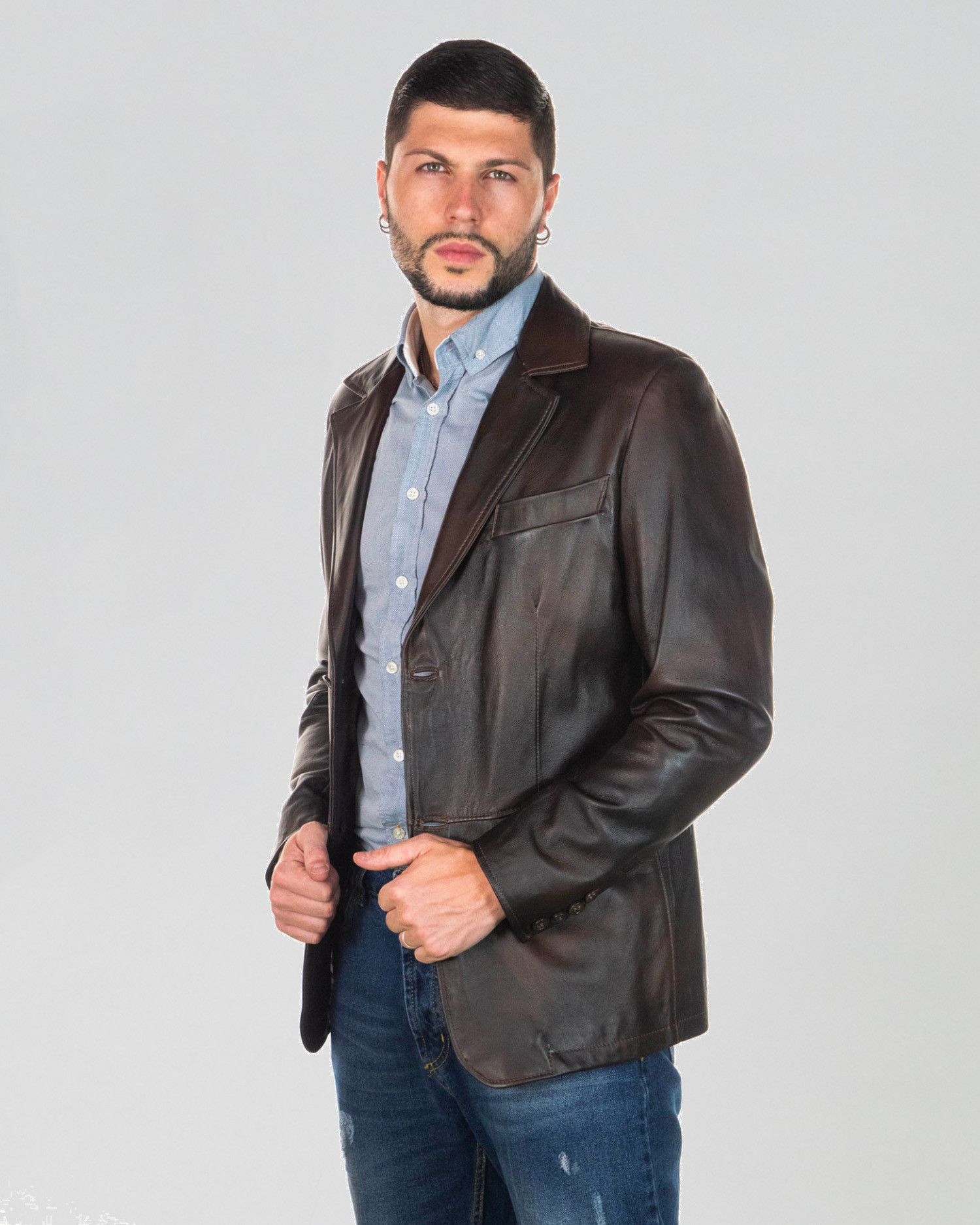 The Ettore leather jacket reinterprets the classic men’s wardrobe with an essential and contemporary approach. A piece designed for those seeking a versatile men’s leather jacket, capable of effortlessly complementing both formal outfits and more relaxed looks.