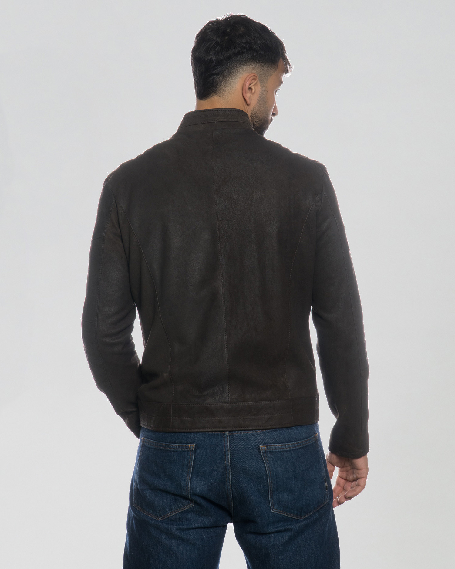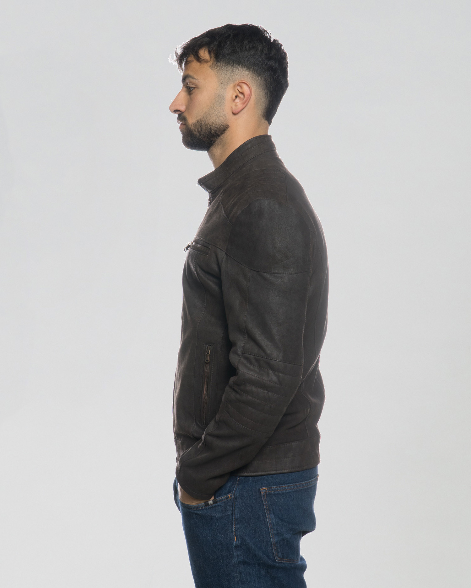 Attila - Biker Man dark brown Nabuk Scratched effect in real leather