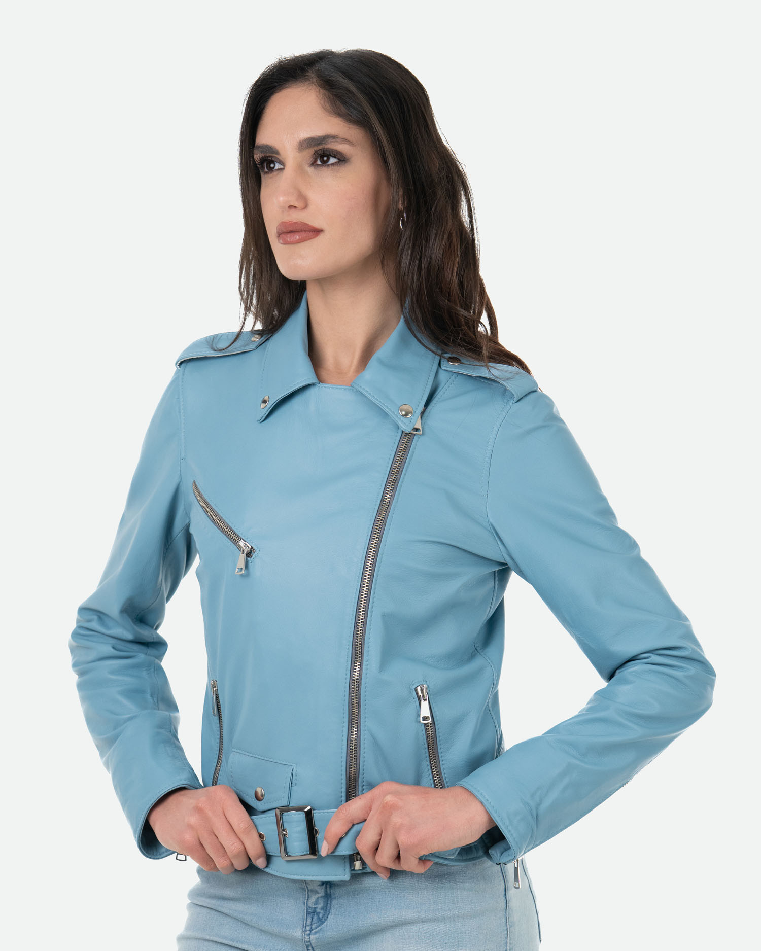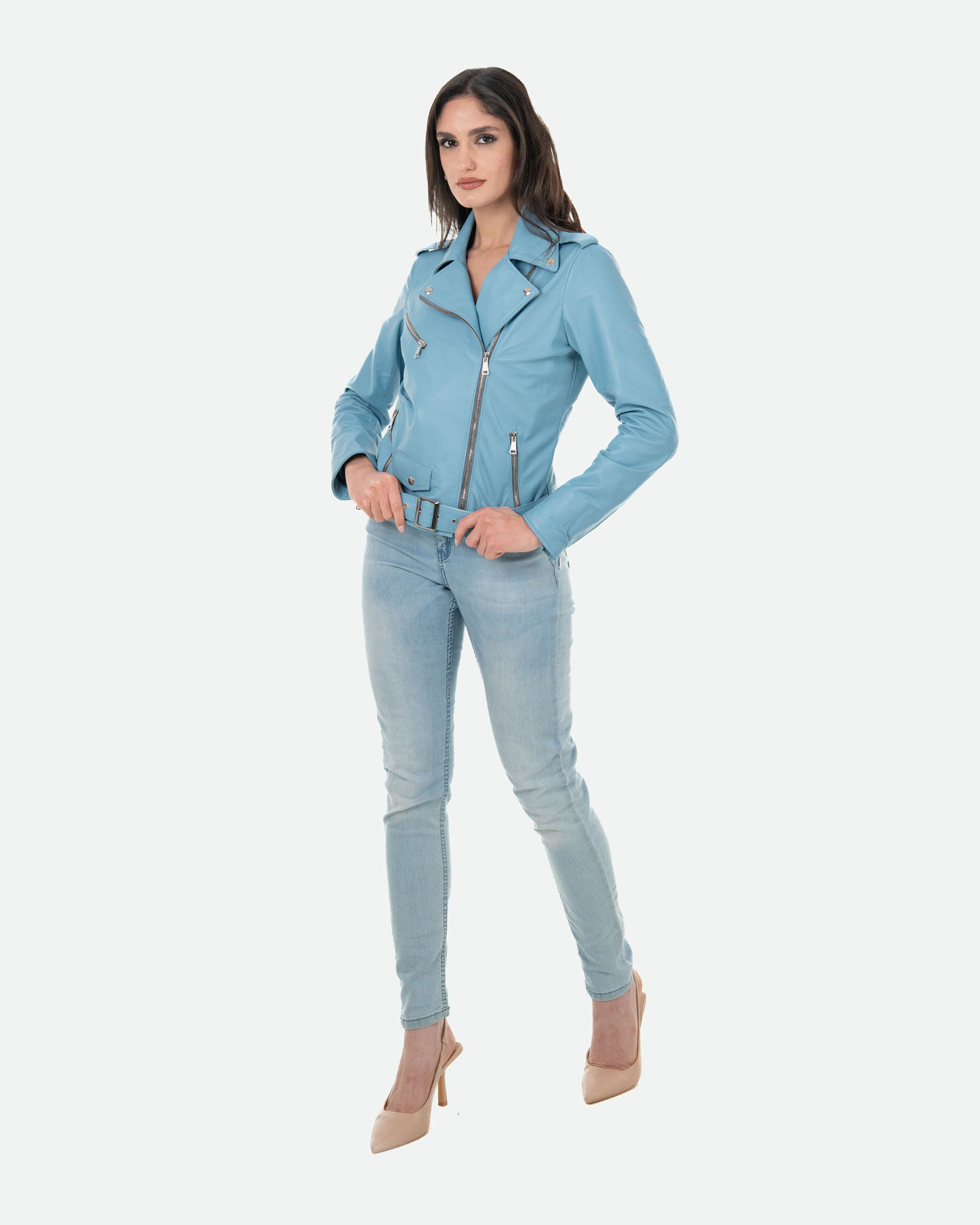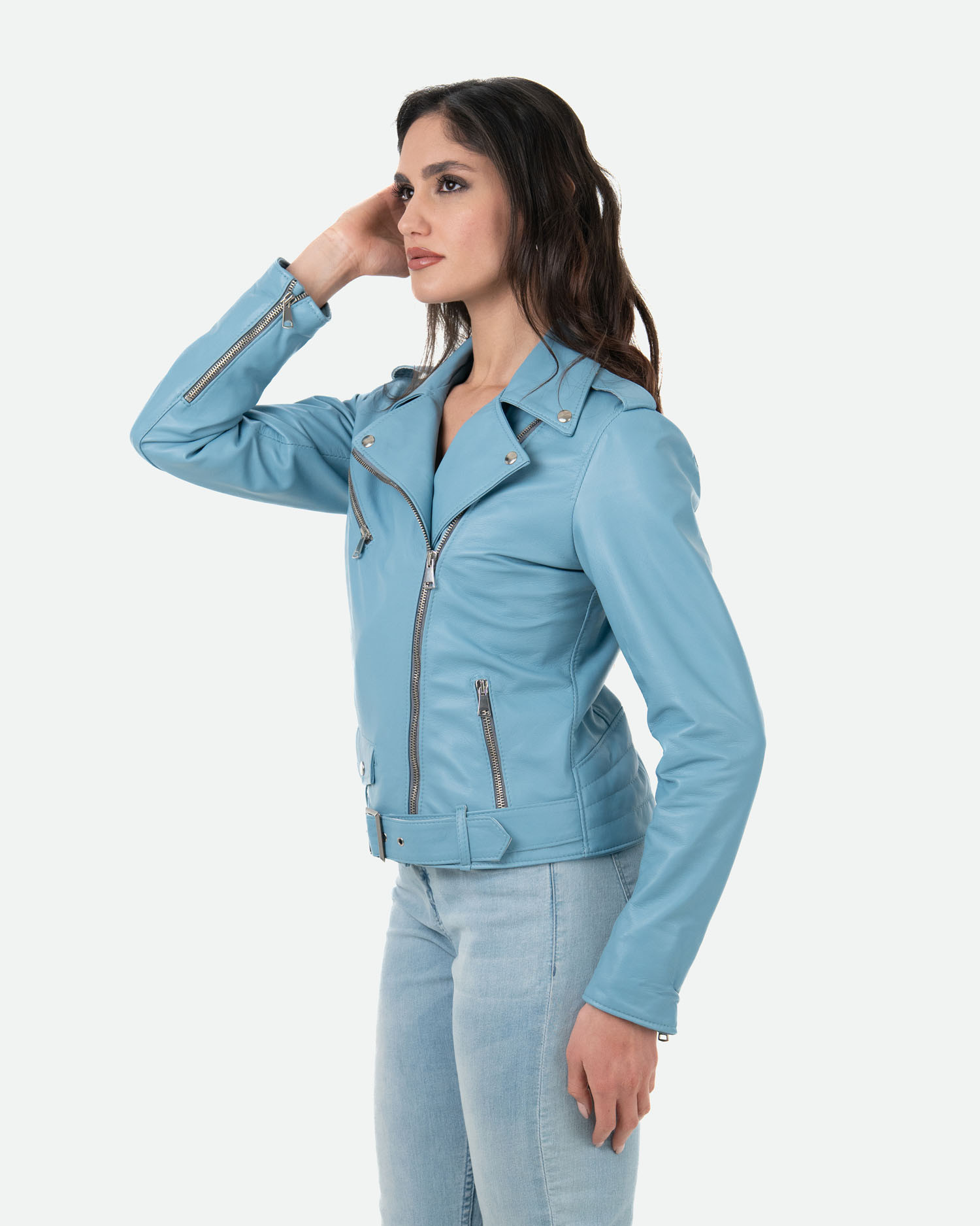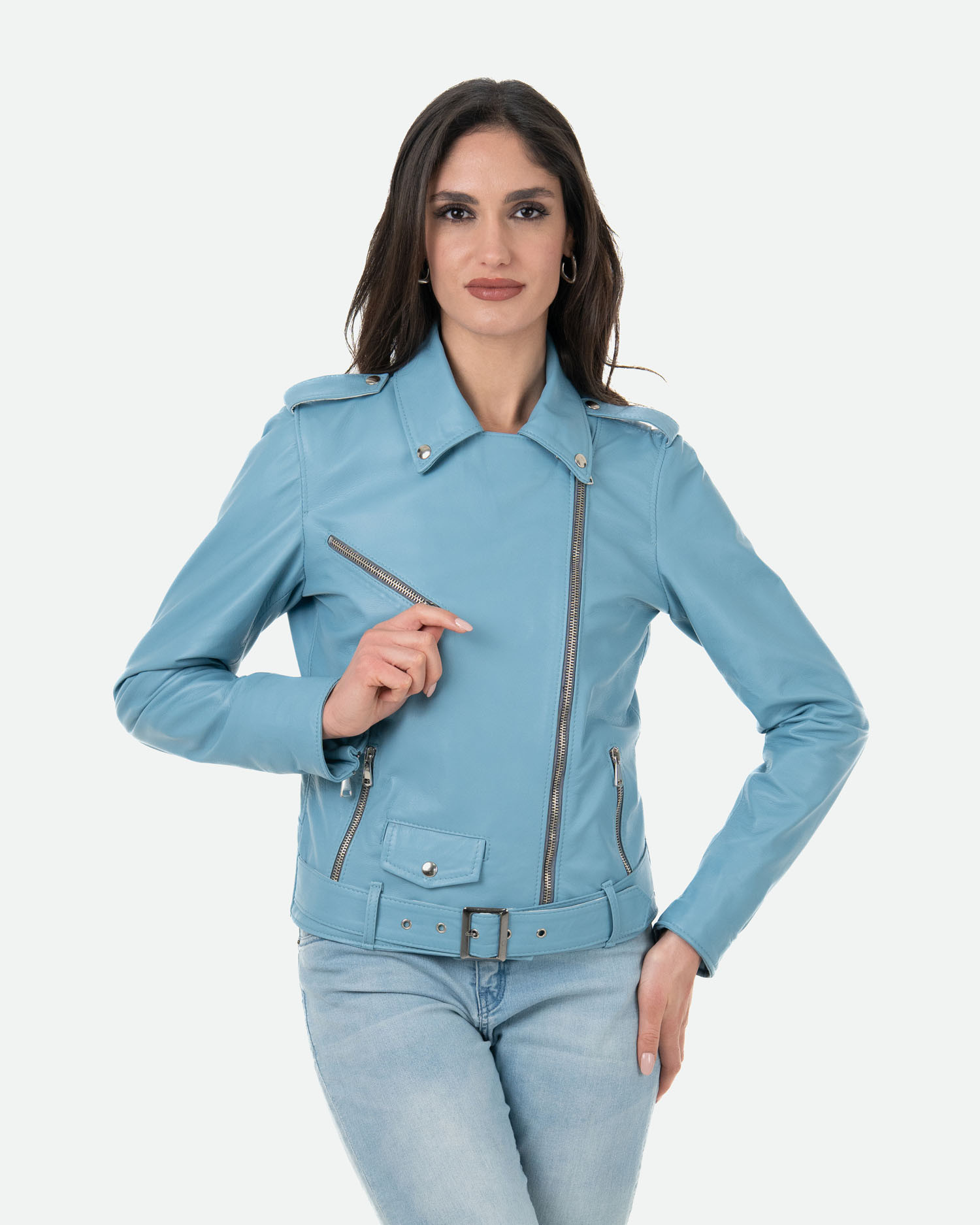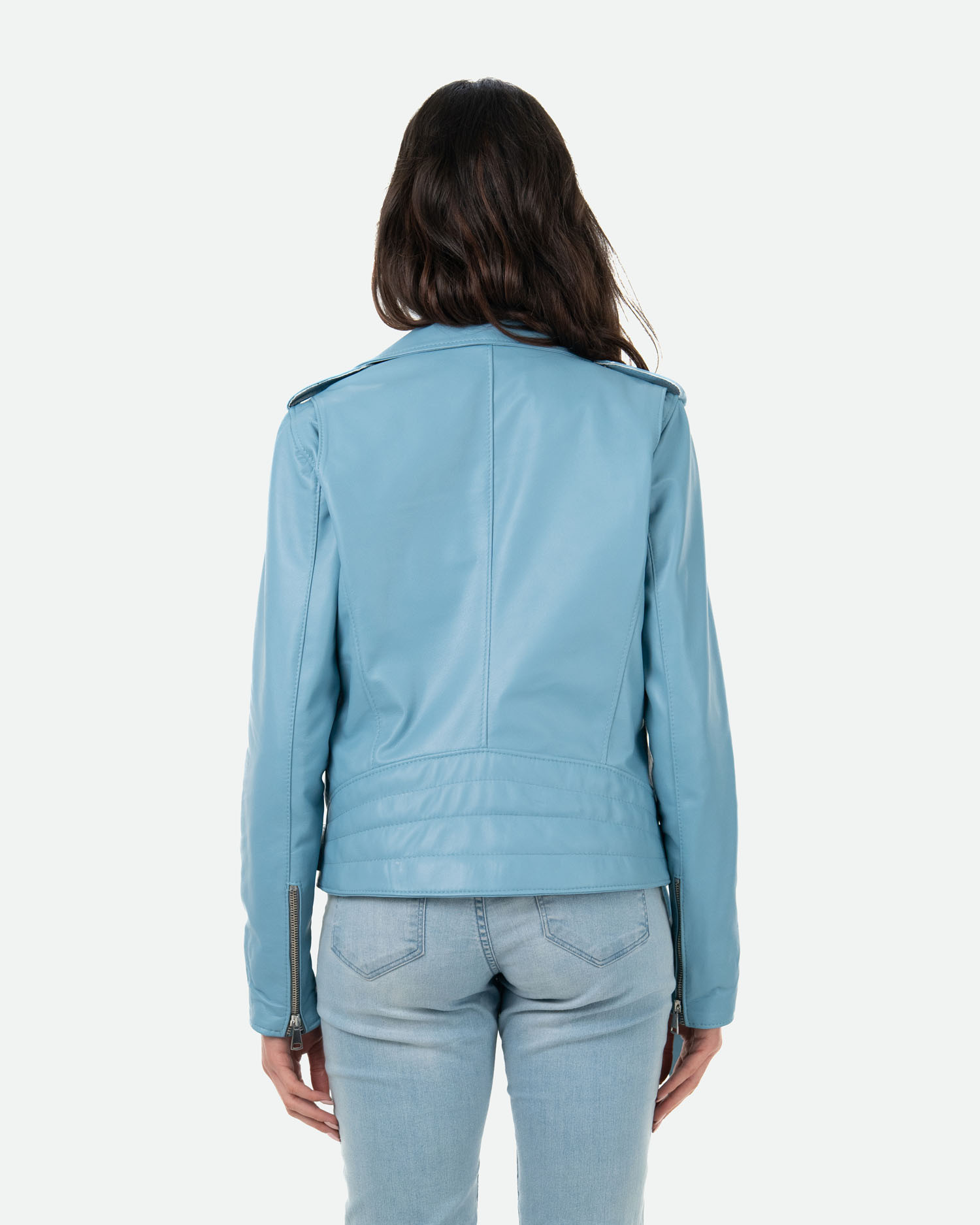 Emma - Light Blue Leather Perfecto