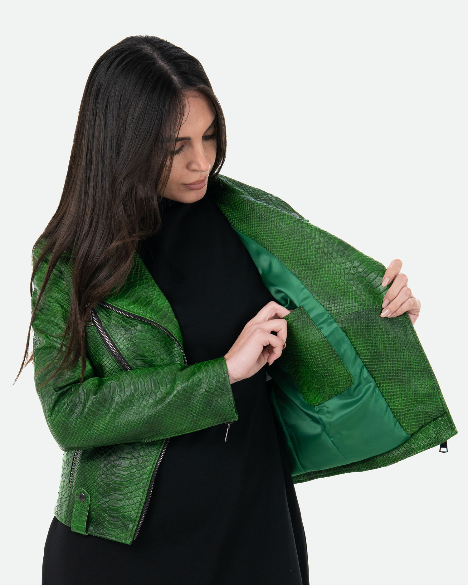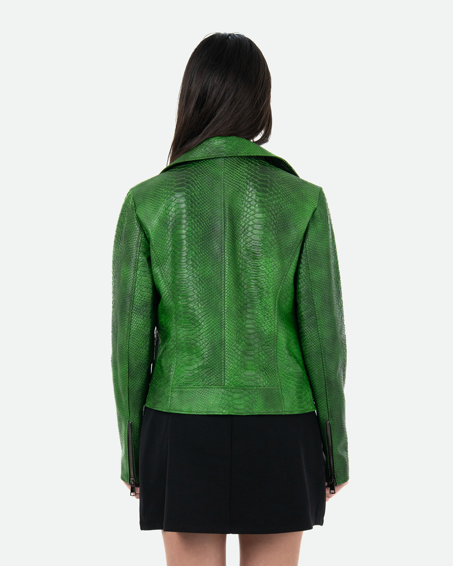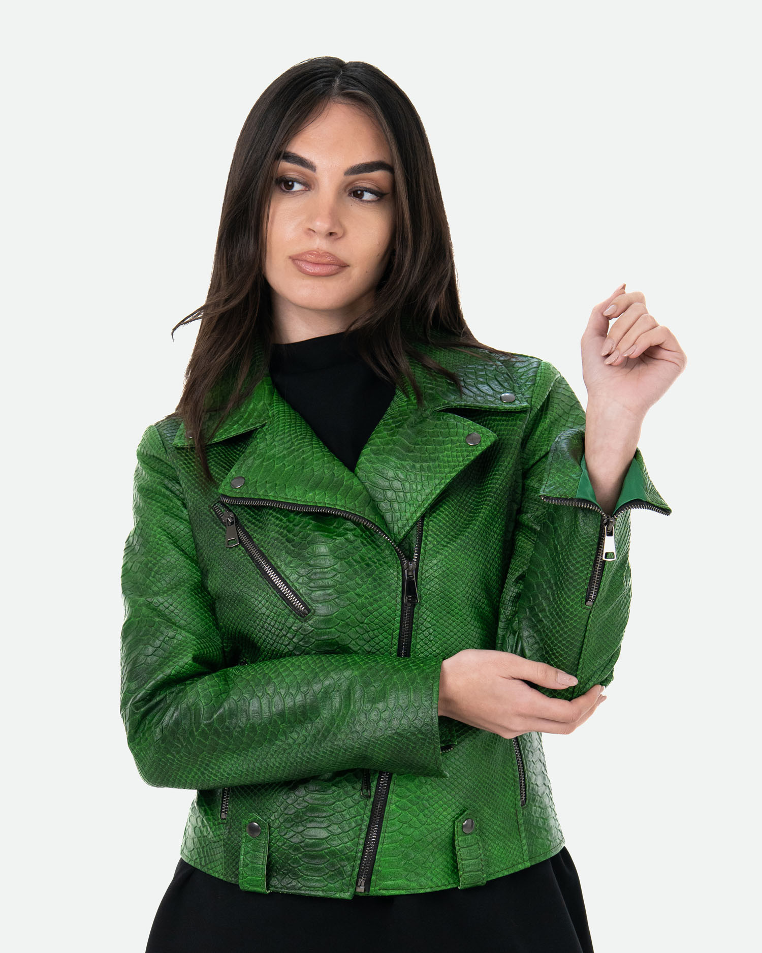 Celina - Green Crocodile Effect Perfecto Leather Jacket