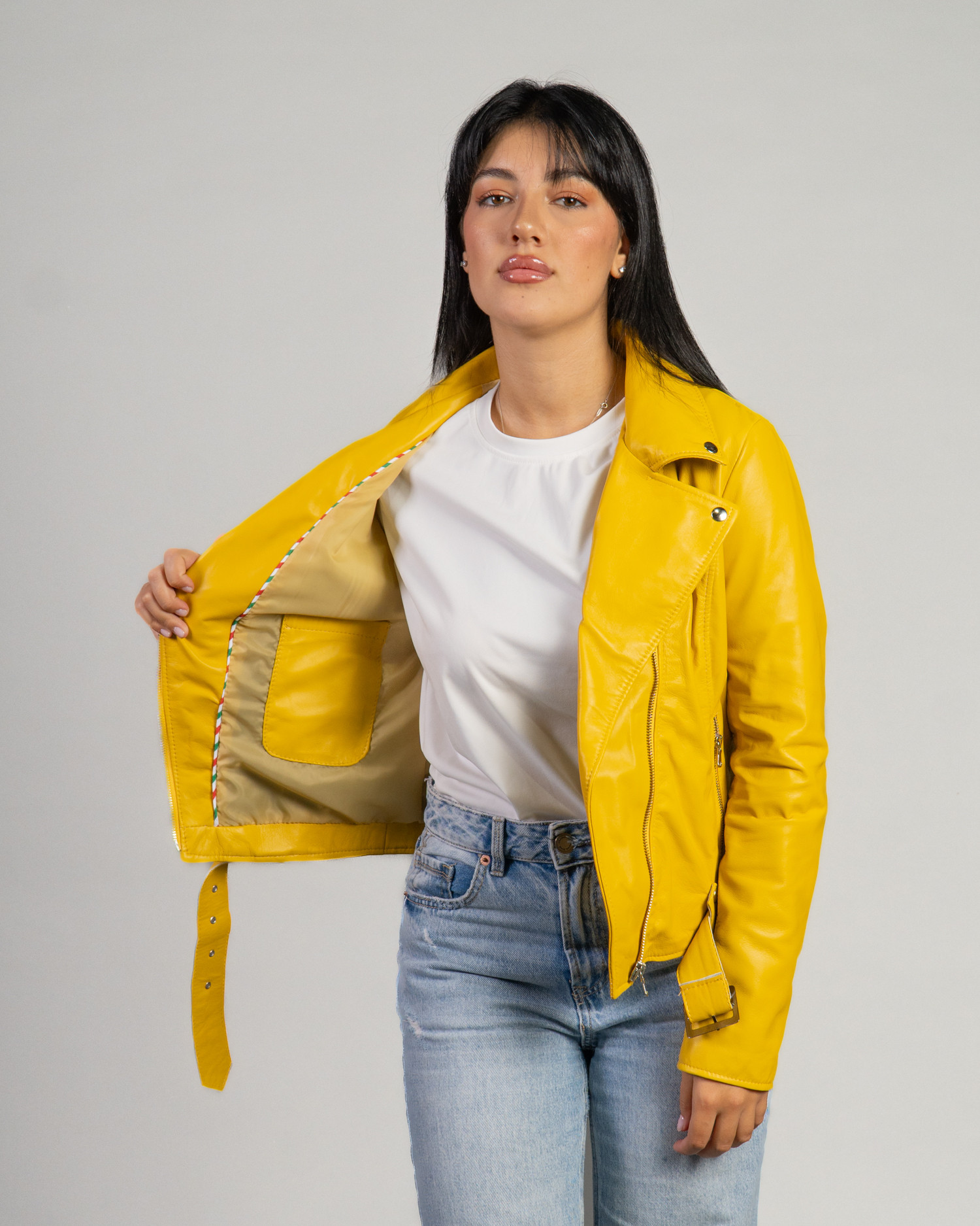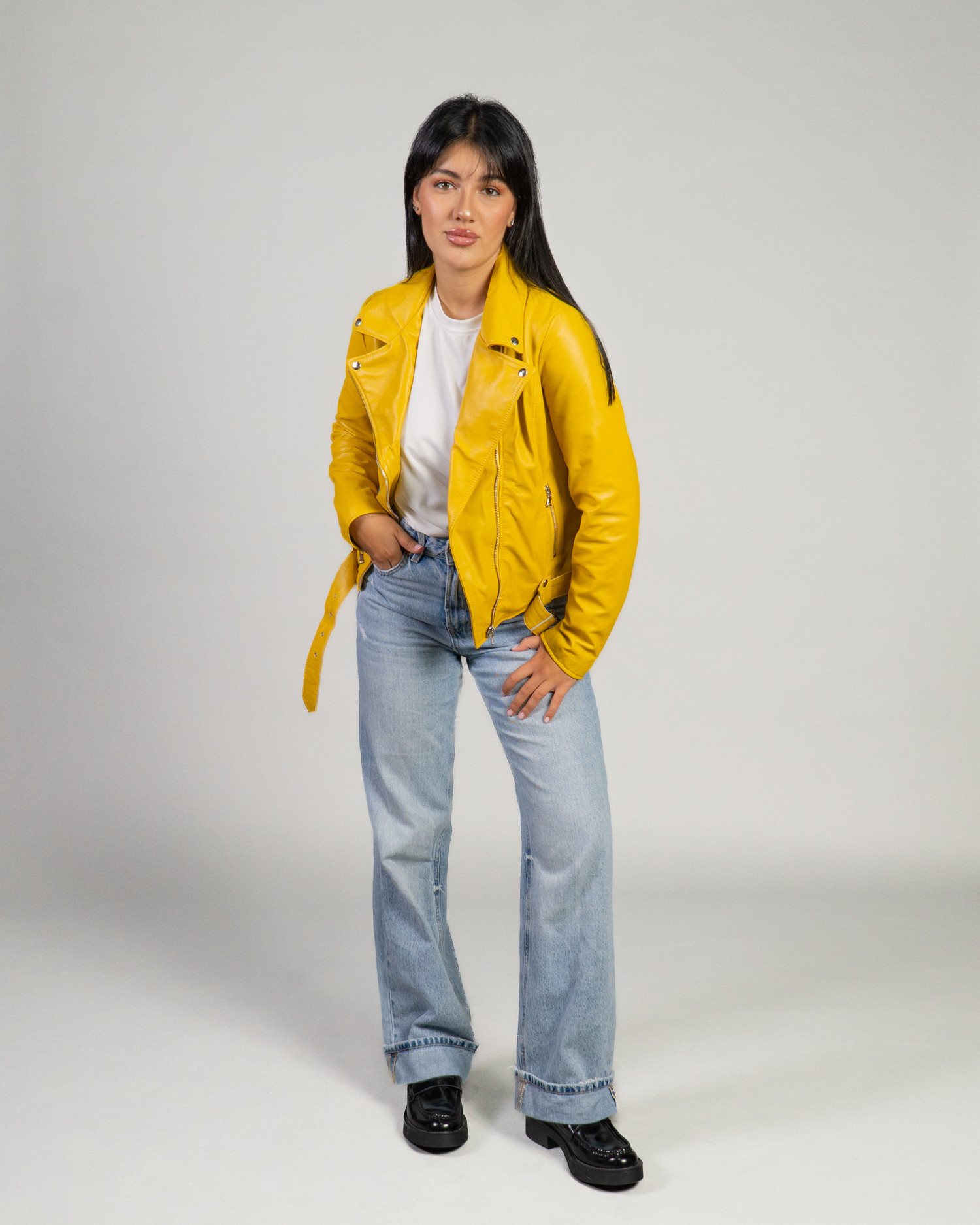 Celina - Yellow Perfecto Leather Jacket