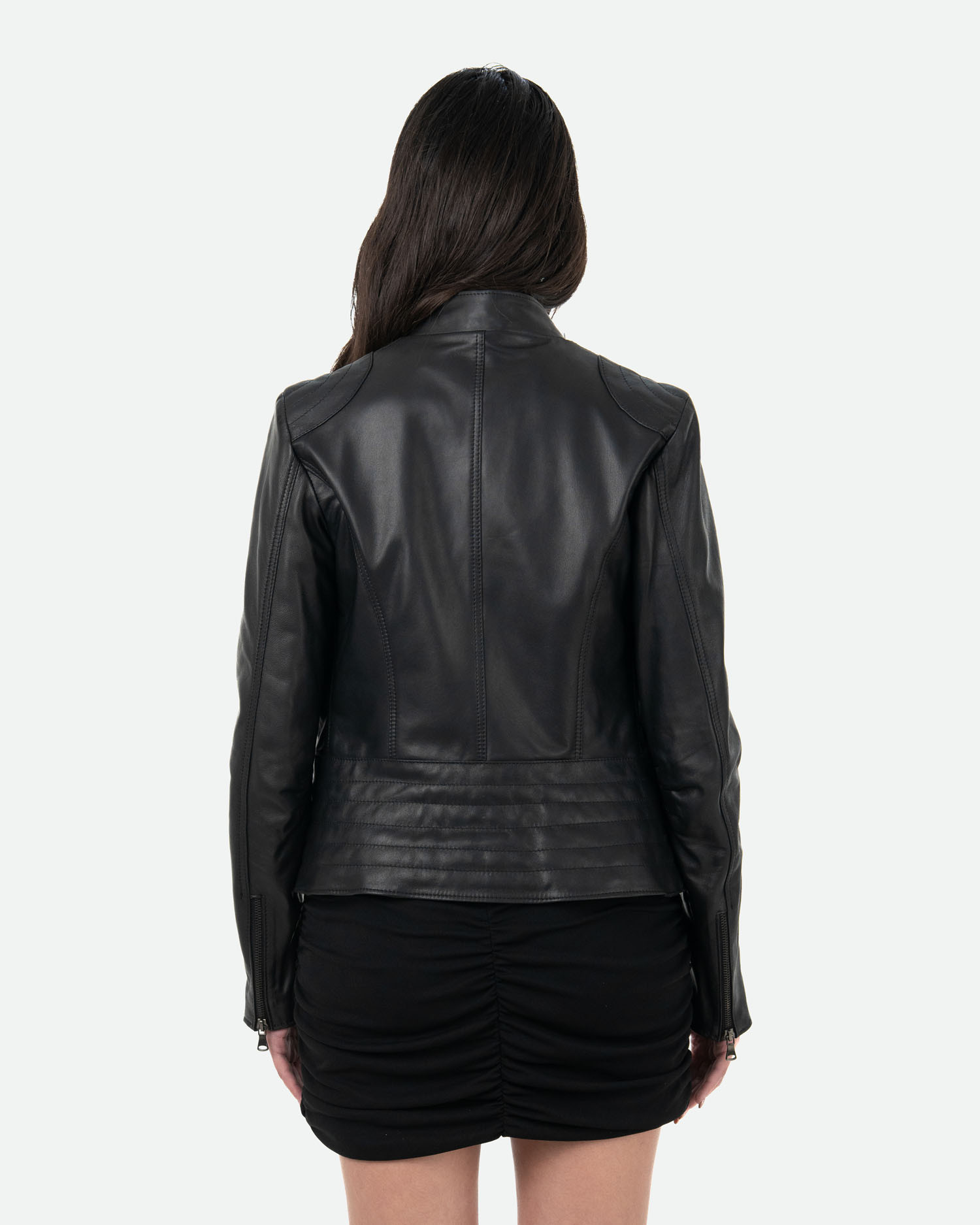 The Raffaella women's leather perfecto is the iconic piece designed for those who love to combine elegance with character. The slim fit enhances the silhouette, while the strategic quilting on the shoulders and sides adds texture, durability, and a contemporary touch to your look.