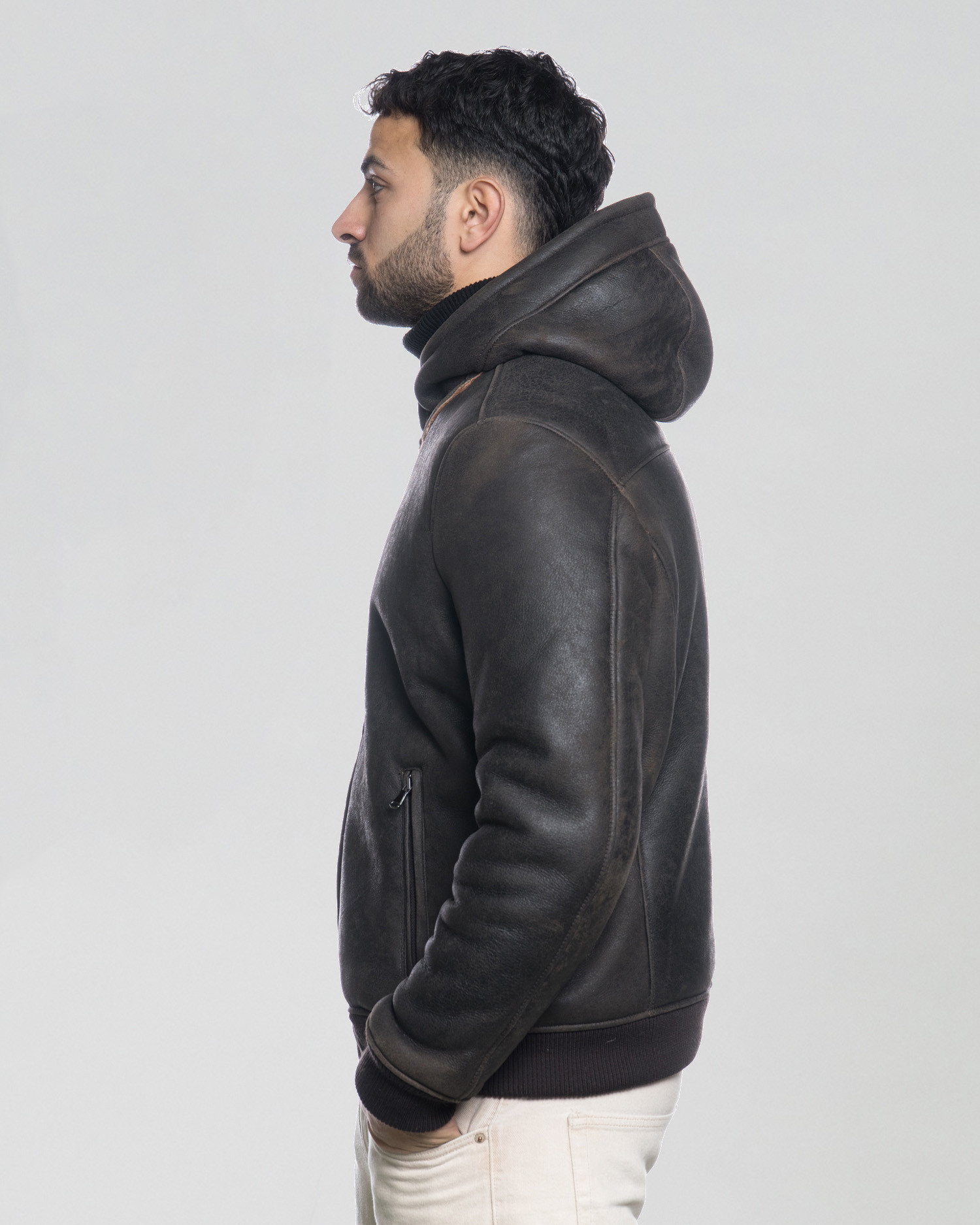 Contemporary reinterpretation of a timeless classic, a garment designed to face the winter with character. Handcrafted in real high quality sheepskin, it has a smooth leather exterior with a dark brown effect and an interior in caramel shearling fur that guarantees maximum thermal comfort.