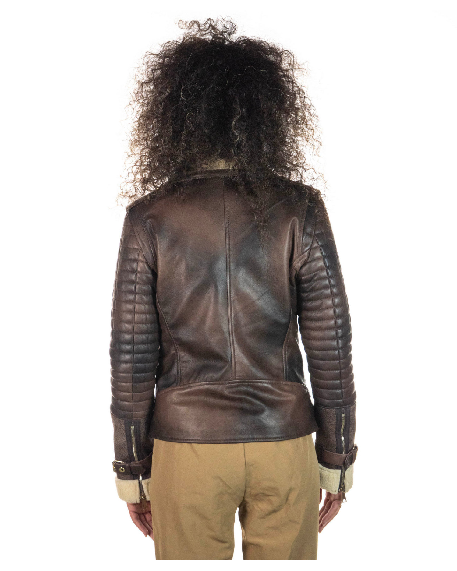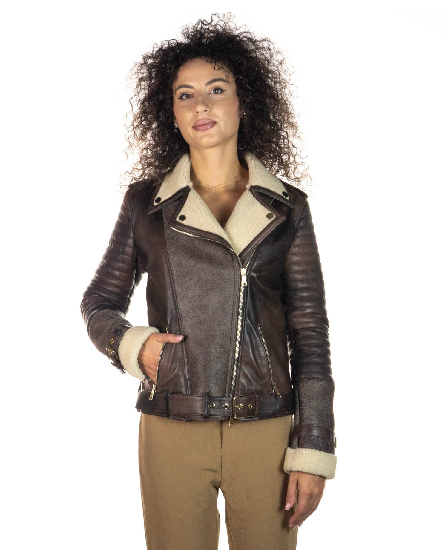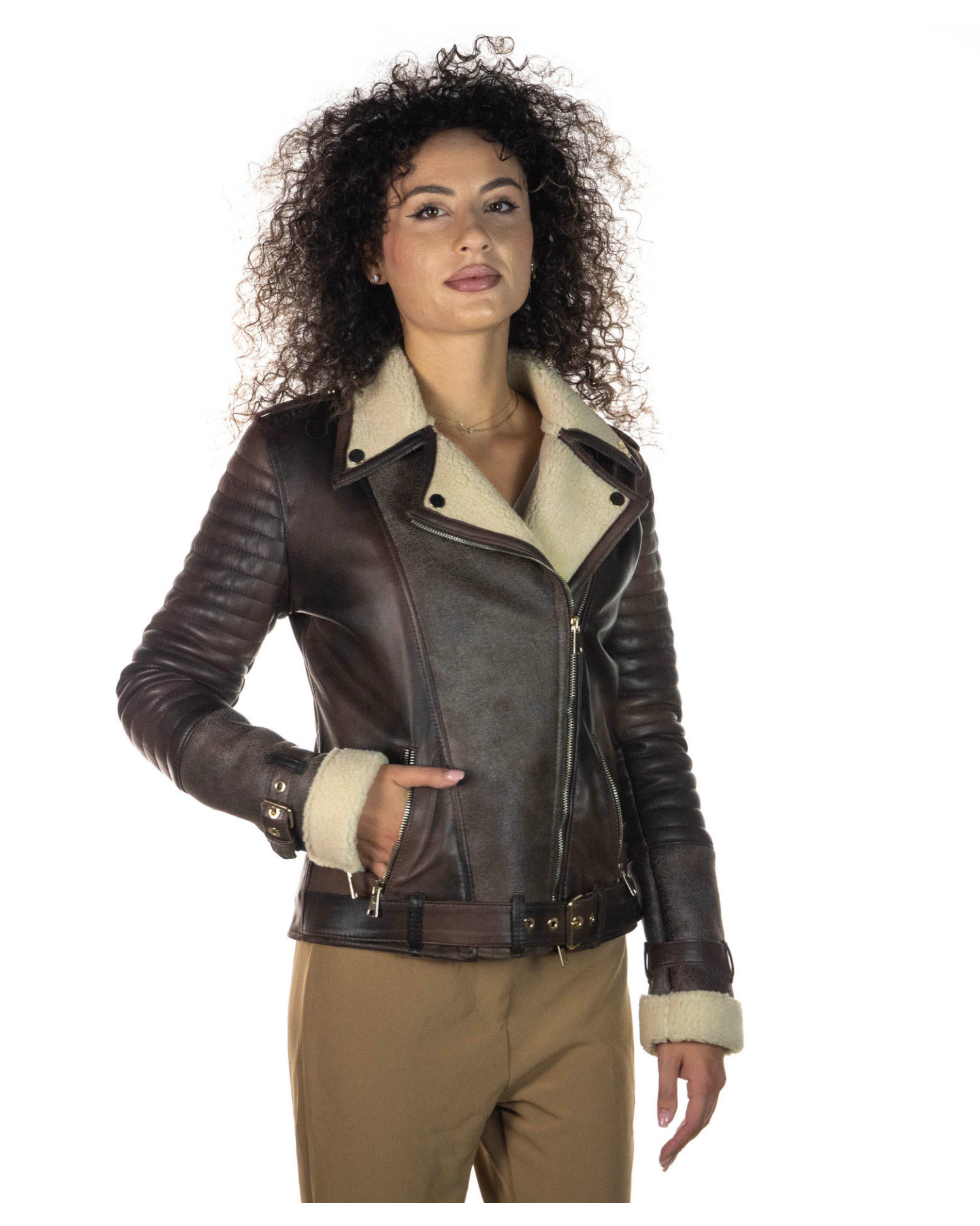 Women's jacket in real Brown Shearling and 100% made in Italy genuine leather