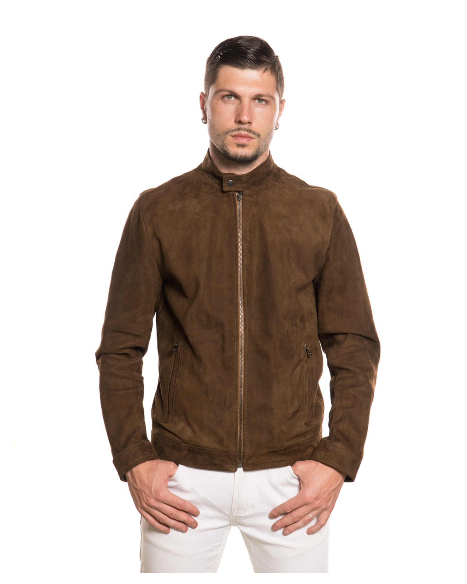 Crafted from genuine suede leather, this men’s suede jacket offers a soft and flexible texture, designed to accompany you every day with comfort and durability. The natural leather ensures breathability and a quality that improves over time, making each piece truly unique.
