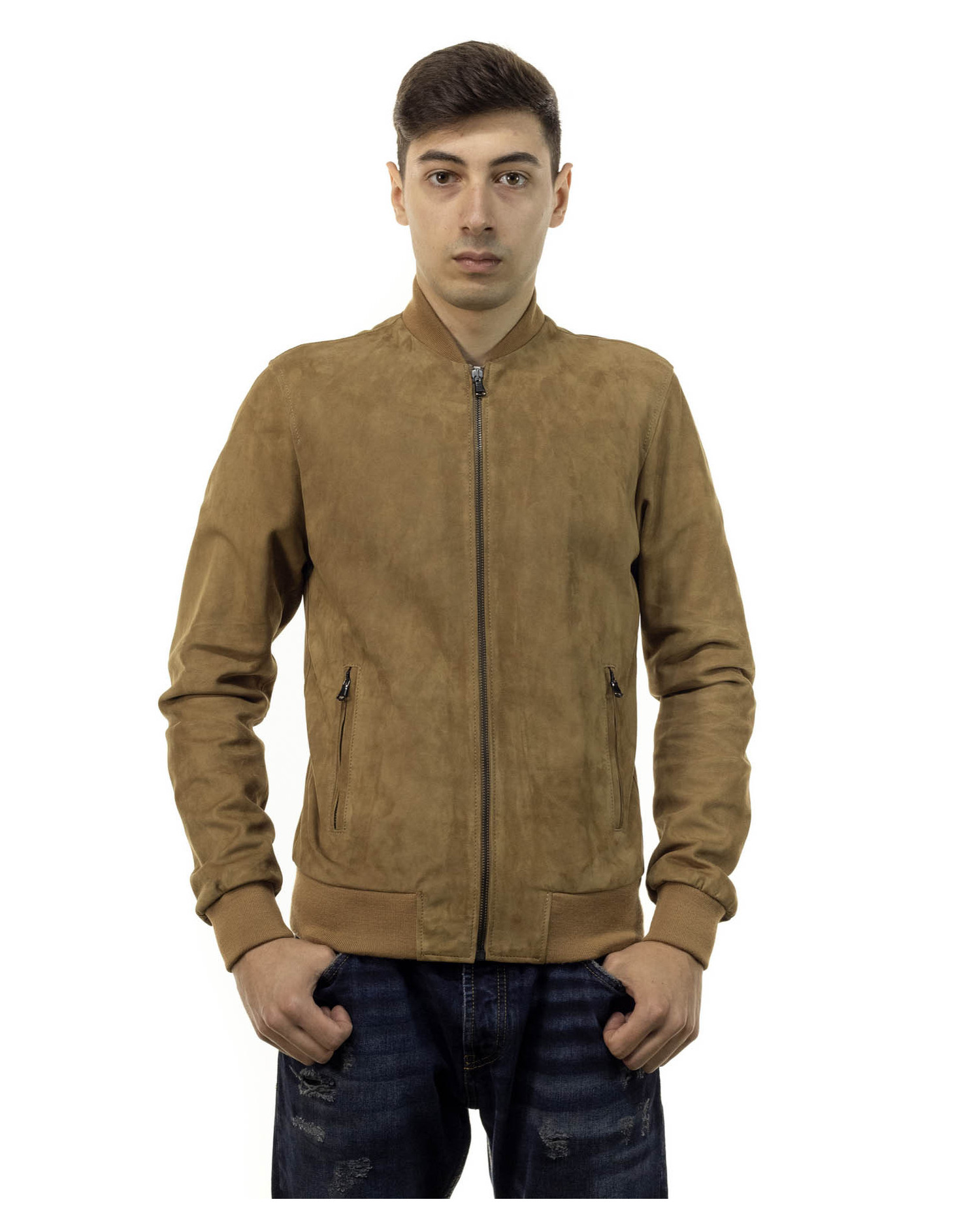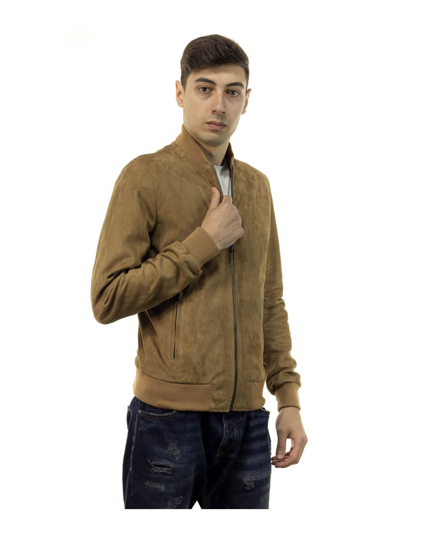 The men’s suede leather bomber jacket David is the perfect piece for those seeking a balance between casual elegance and metropolitan style. Its clean lines and essential design reinterpret the classic bomber jacket with a modern twist, featuring a slim fit that enhances the male silhouette without compromising comfort.