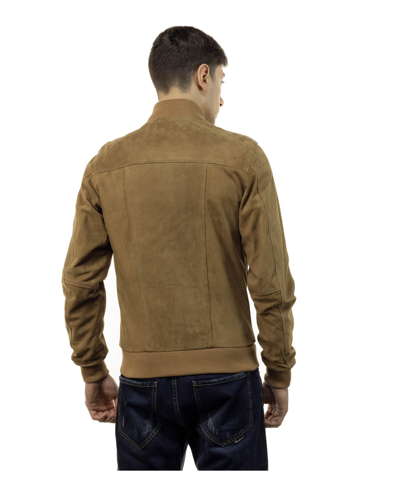 Men's suede leather bomber jacket with elasticated collar, cuffs and hem.