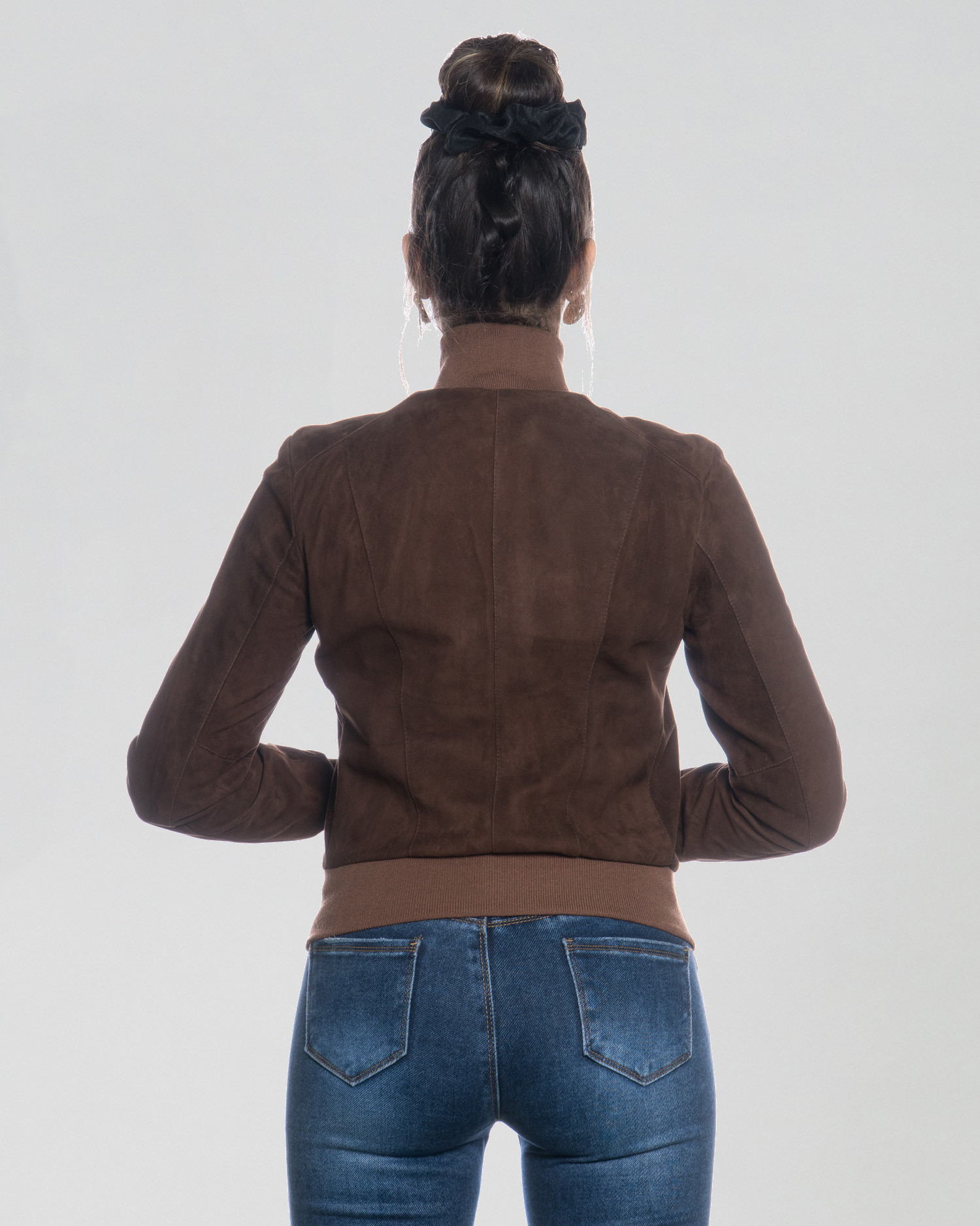 Women's Dark Brown Suede Leather Jacket - Roxie | Leather Trend