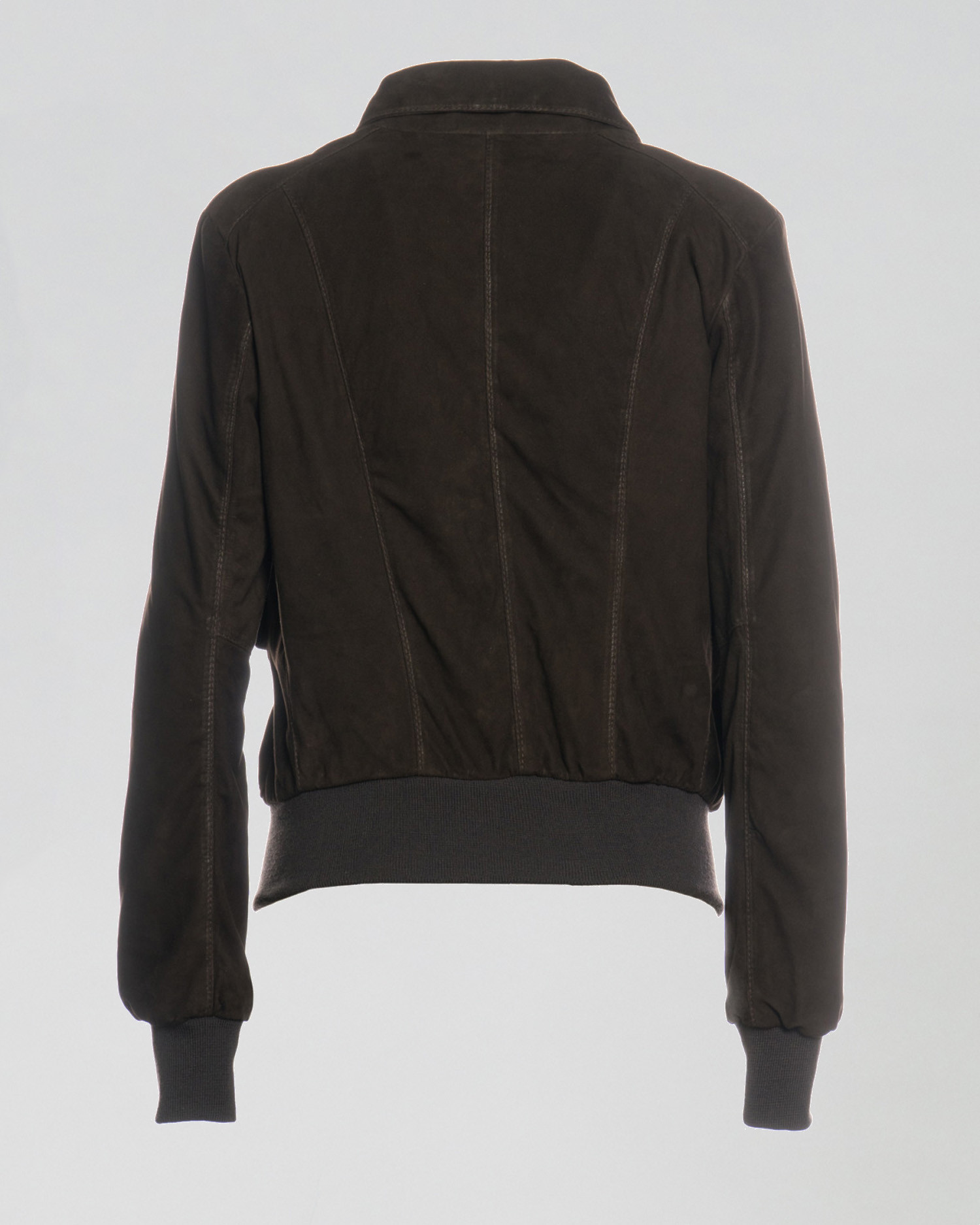 Suede bomber jacket with a shirt collar and elasticated trim.