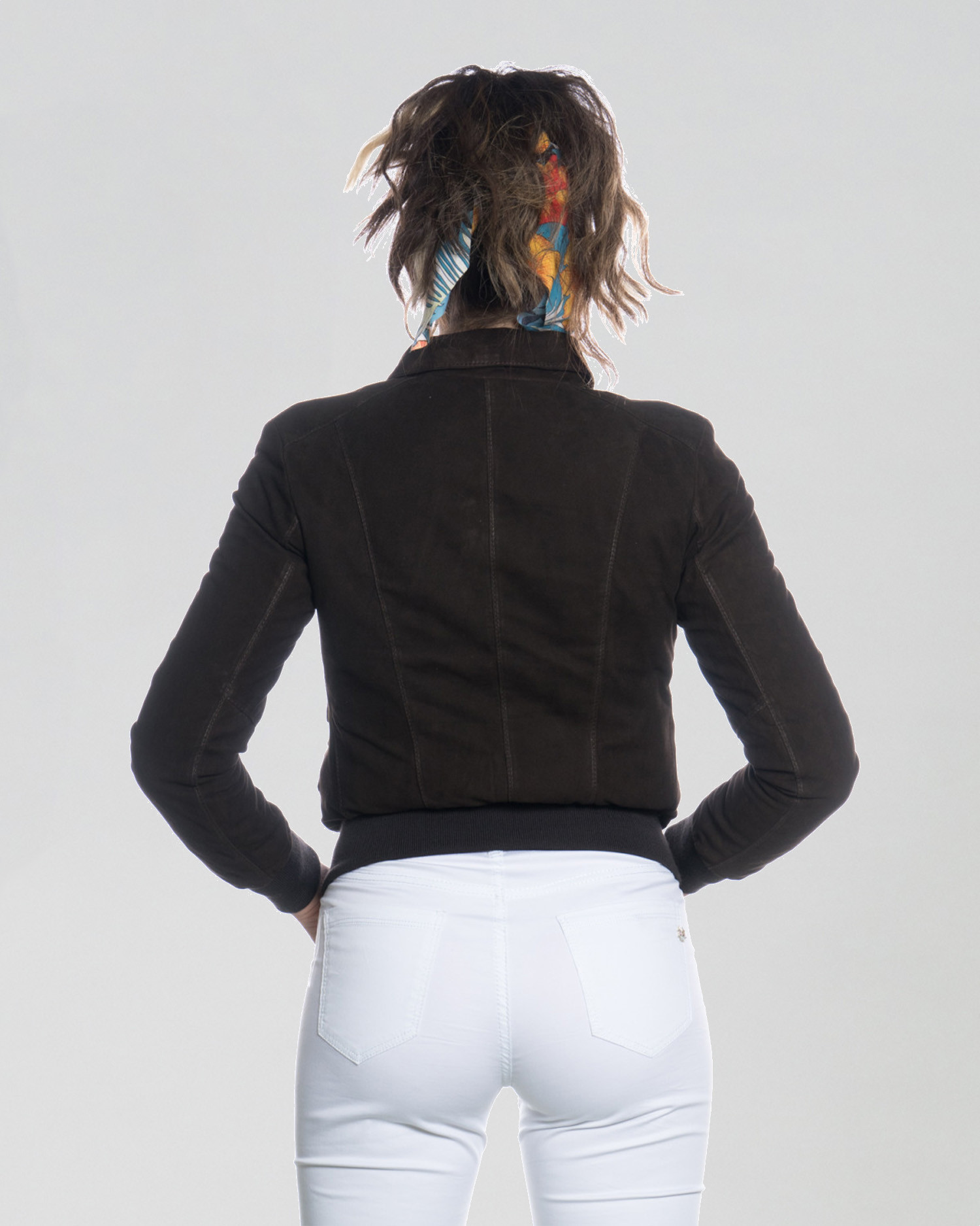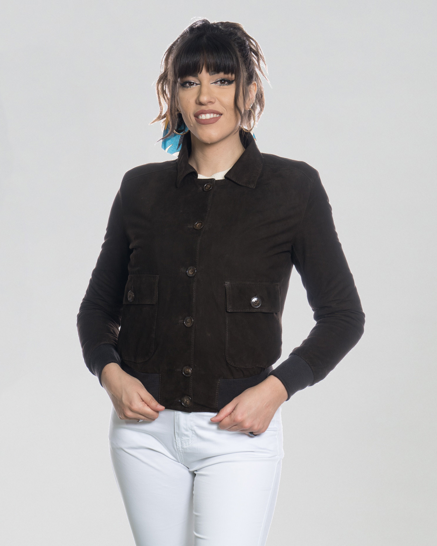 The elastic cuffs and hem ensure a secure and well-defined fit, while the button closure allows you to easily adjust the style. Perfect for completing both casual and more refined looks, it is the ideal piece for those looking for a versatile, elegant, and long-lasting women’s suede bomber jacket.