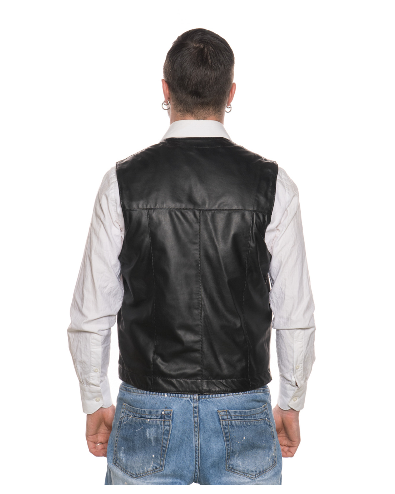 The Gianni leather vest reinterprets masculine style with a clean and contemporary aesthetic, designed for those seeking a versatile yet distinctive piece. Its essential lines enhance the silhouette without weighing it down, making it perfect to complete urban looks or more refined outfits.