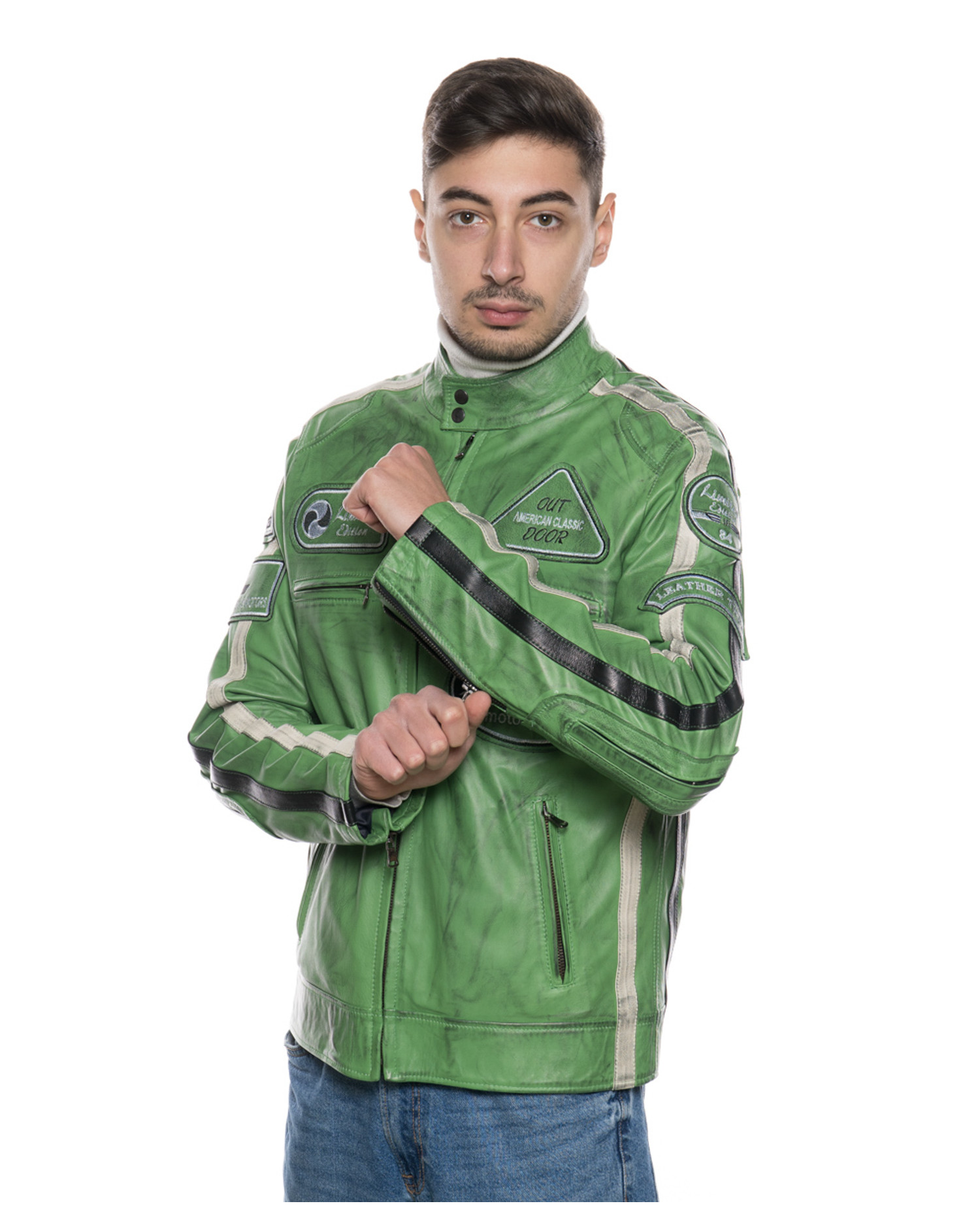 Axel - Biker in Pelle Tamponata Verde Kawasaki