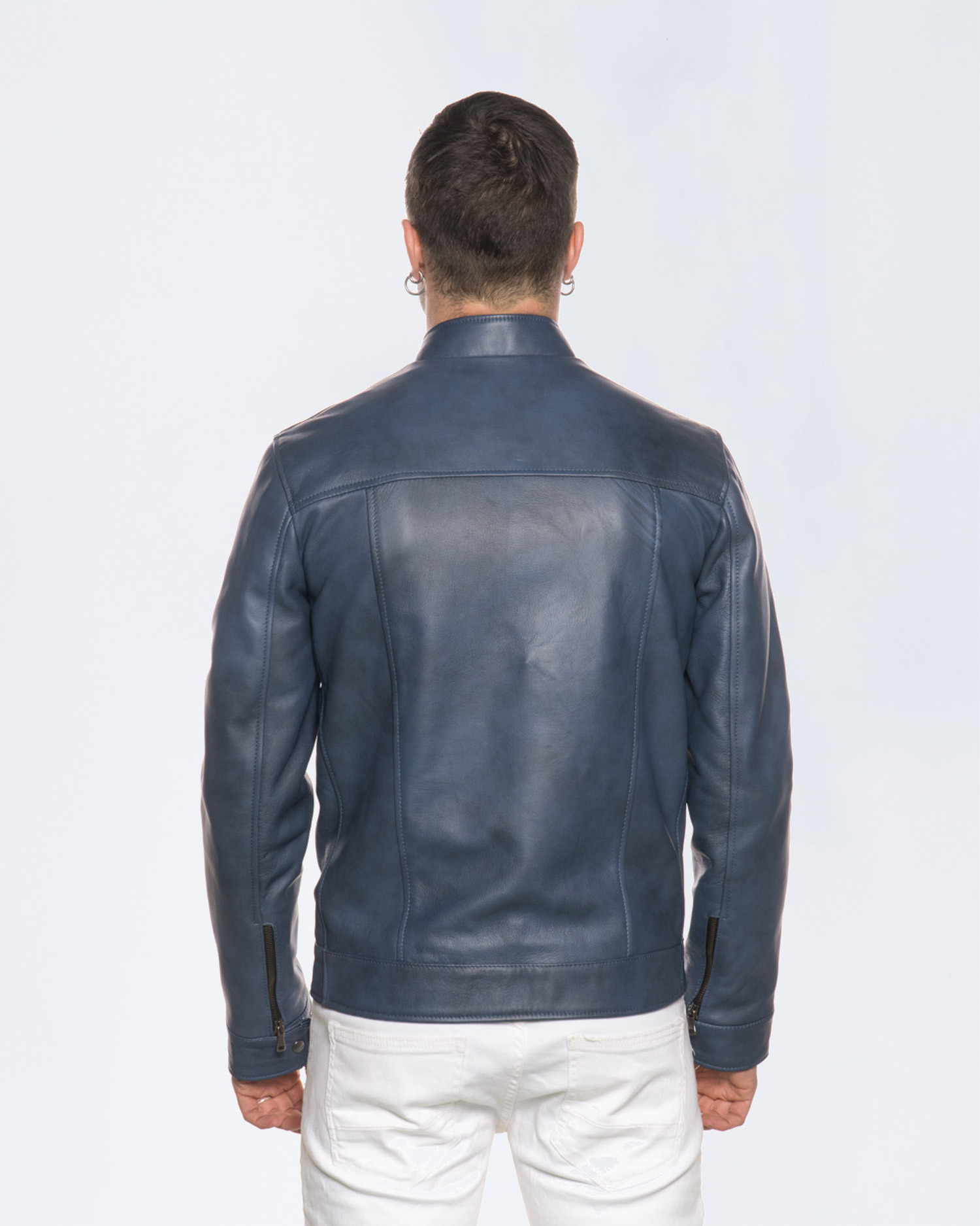 Giacca biker da uomo in vera pelle con zip frontali e sulle maniche.