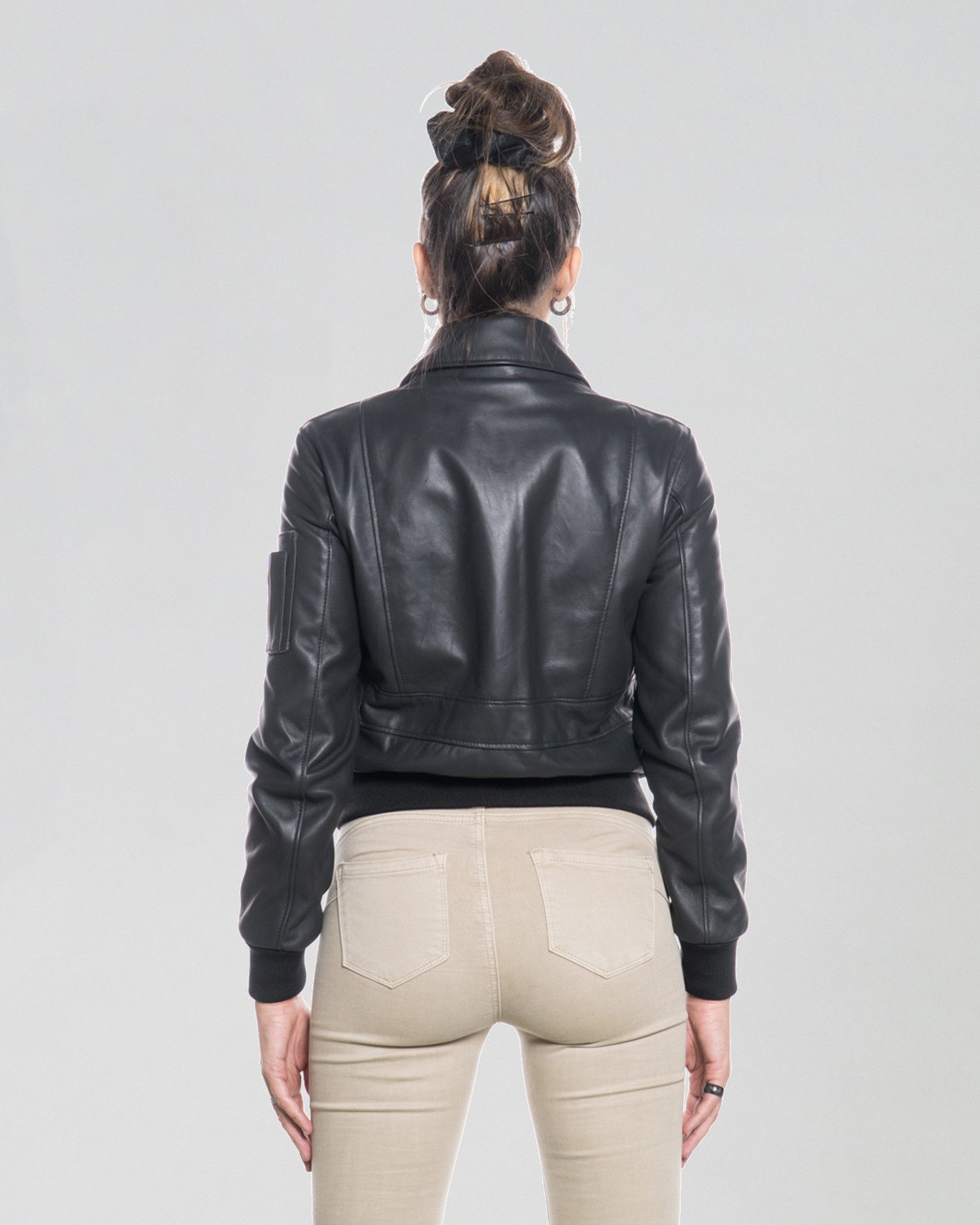 Un bomber in pelle da donna versatile, ideale per outfit casual chic o per aggiungere un dettaglio sofisticato ai look urbani di tutti i giorni.