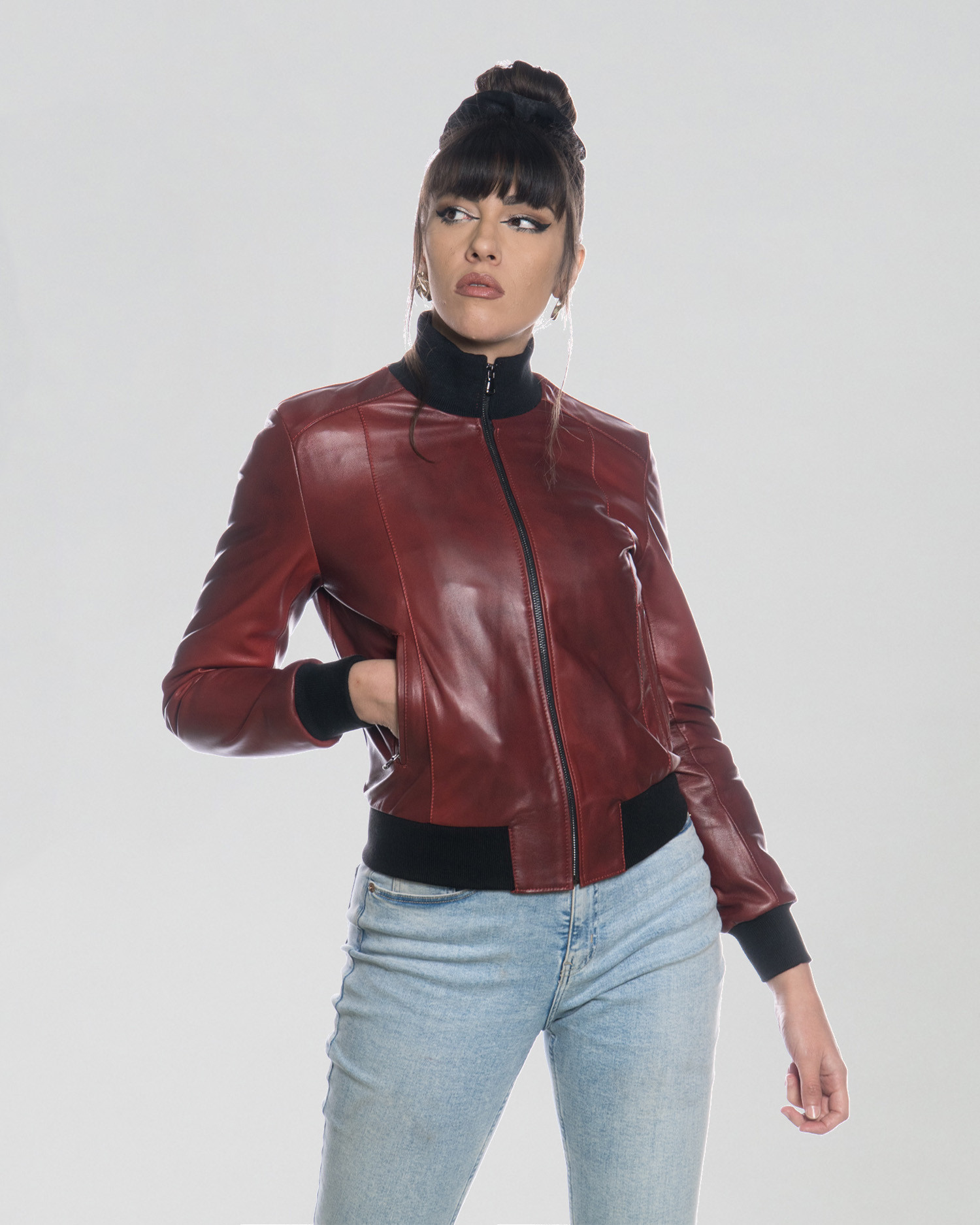 Roxie - Bomber in Pelle Bordeaux