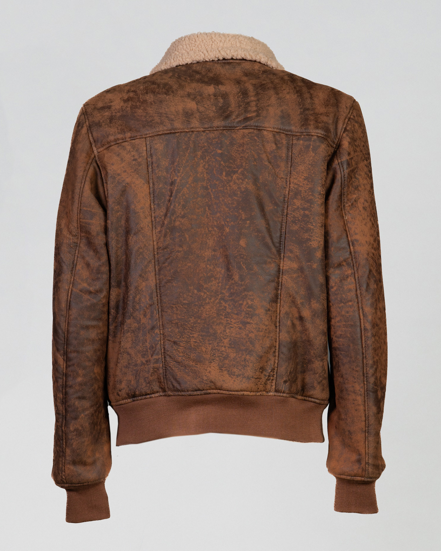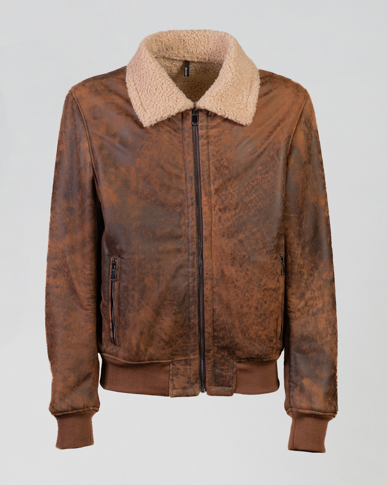 Bomber in vera pelle cuoio graffiato con dettagli e interni effetto shearling.