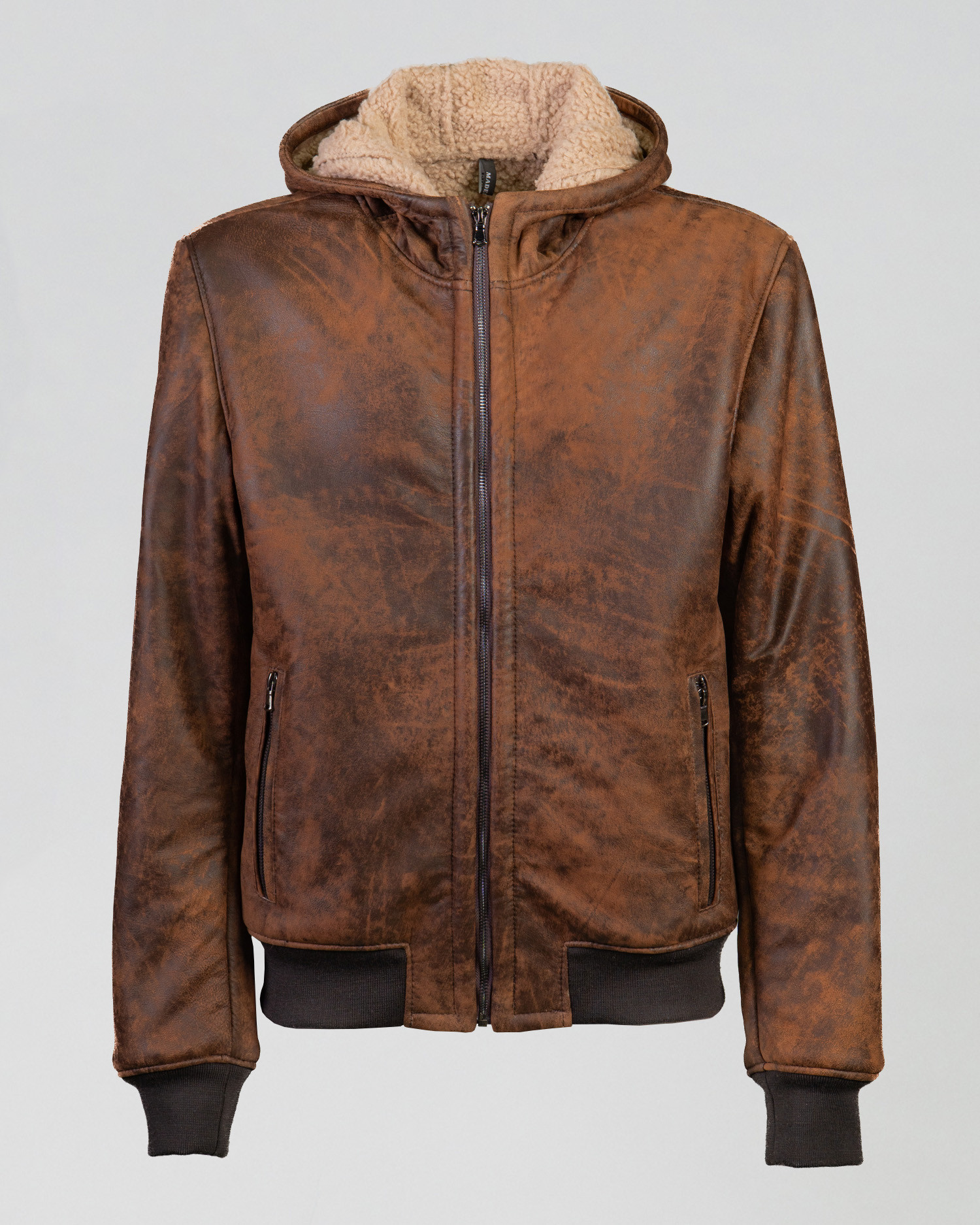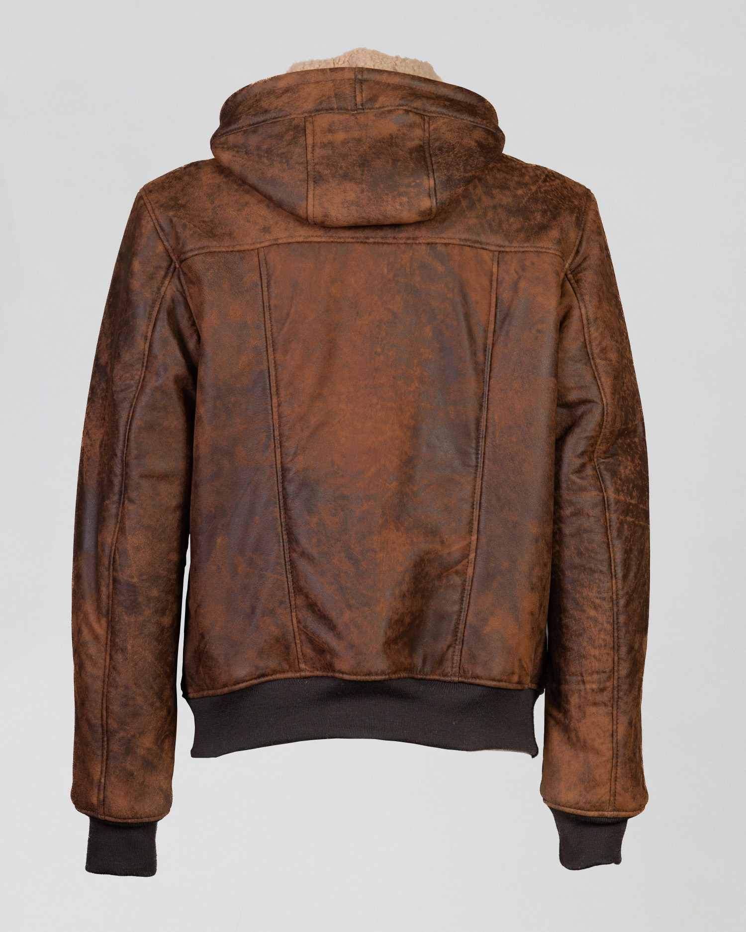 Bomber in vera pelle cuoio graffiato con dettagli e interni effetto shearling.