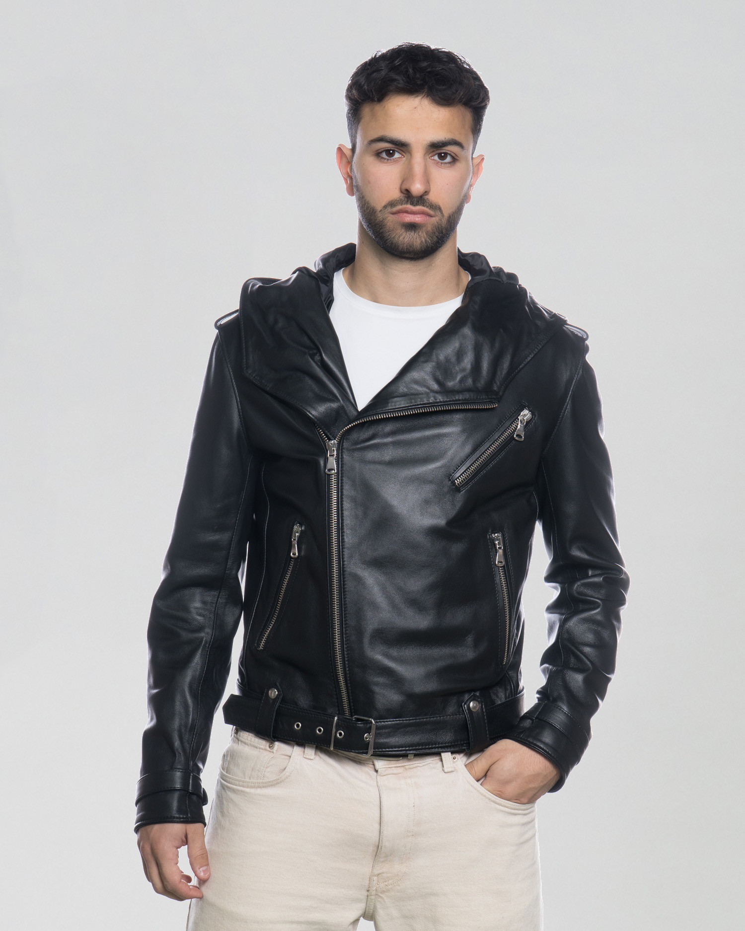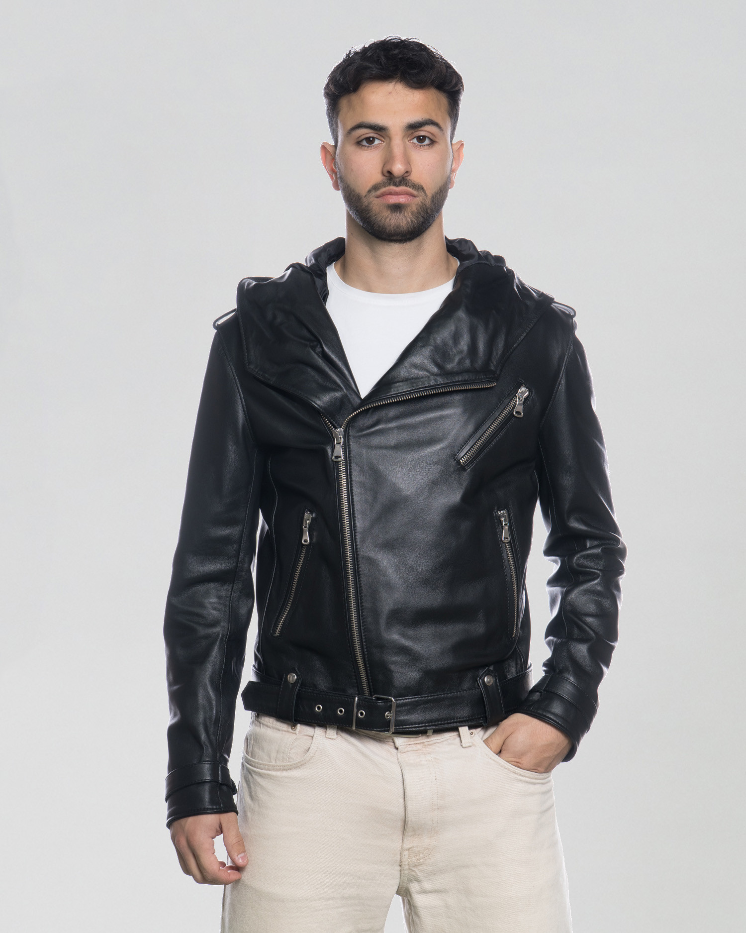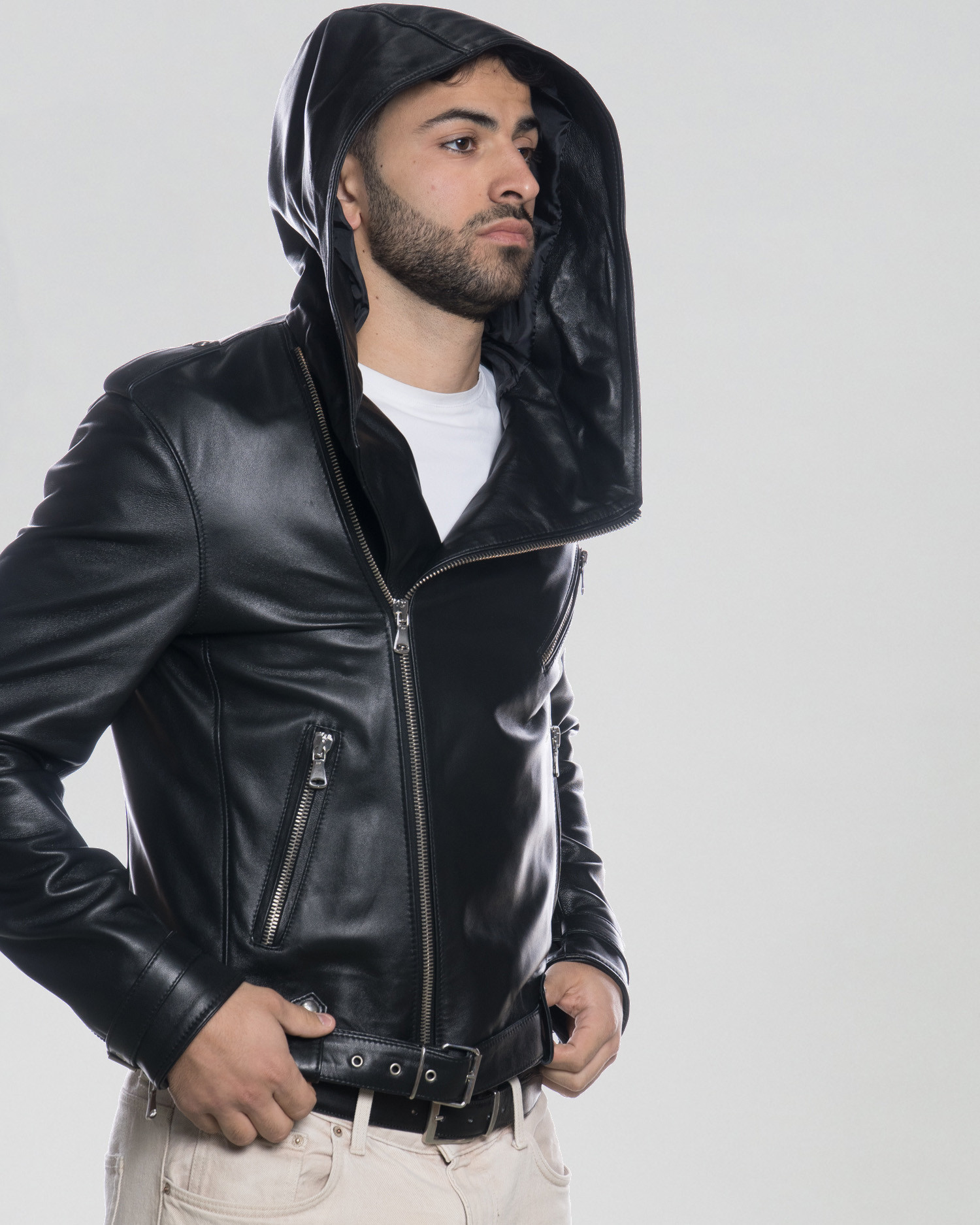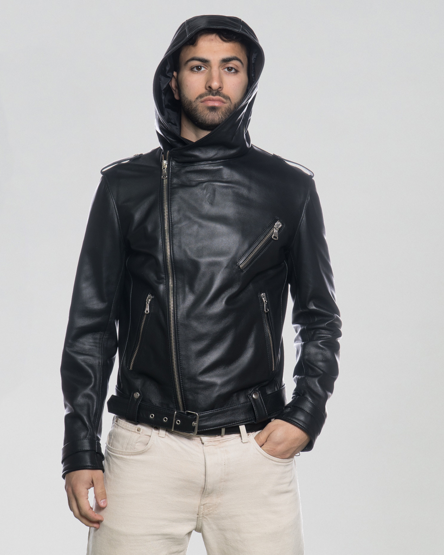Chiodo Capp - Chiodo Uomo Nero in vera pelle con Cappuccio