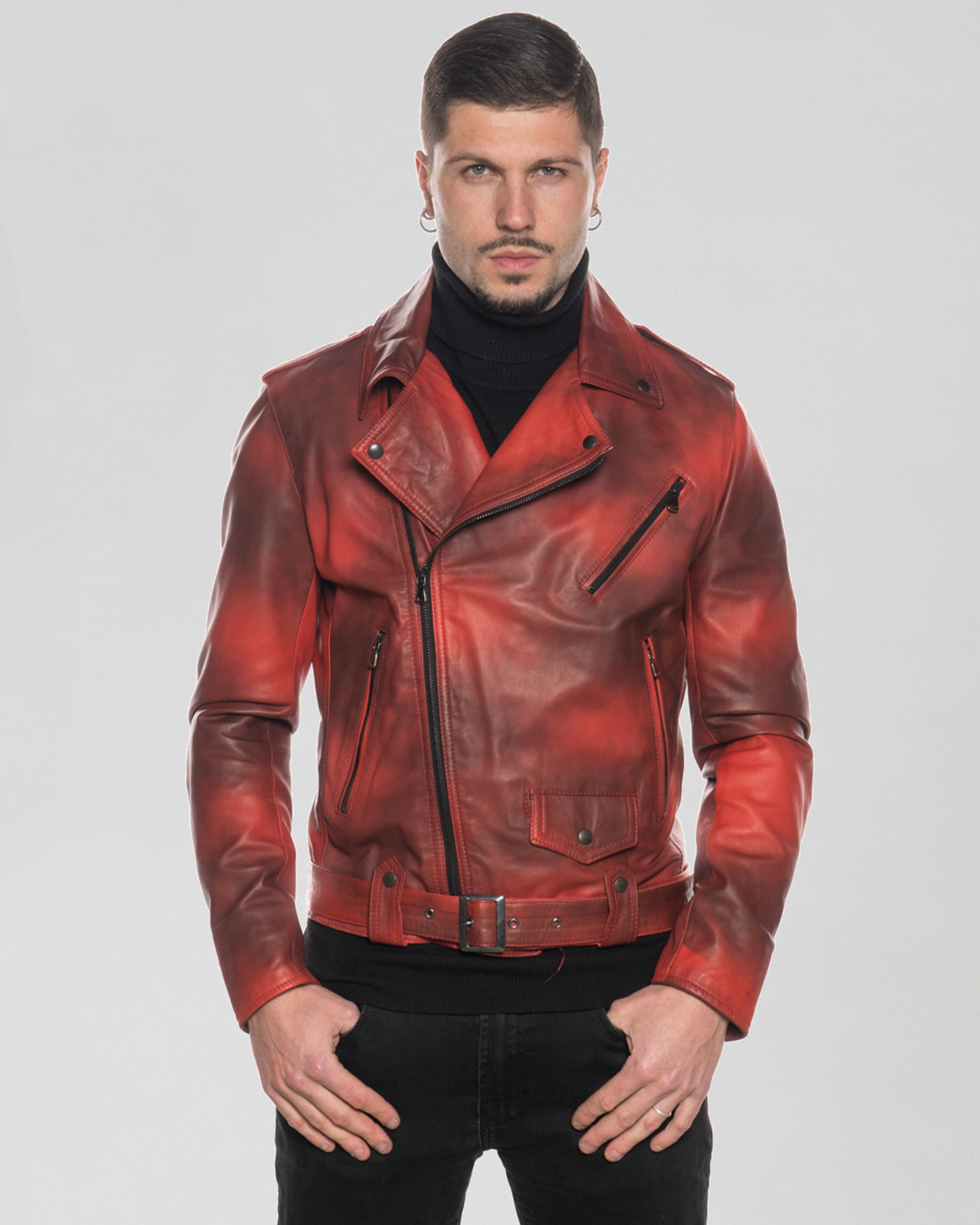 Armando - Chiodo in Pelle Tamponata Rosso