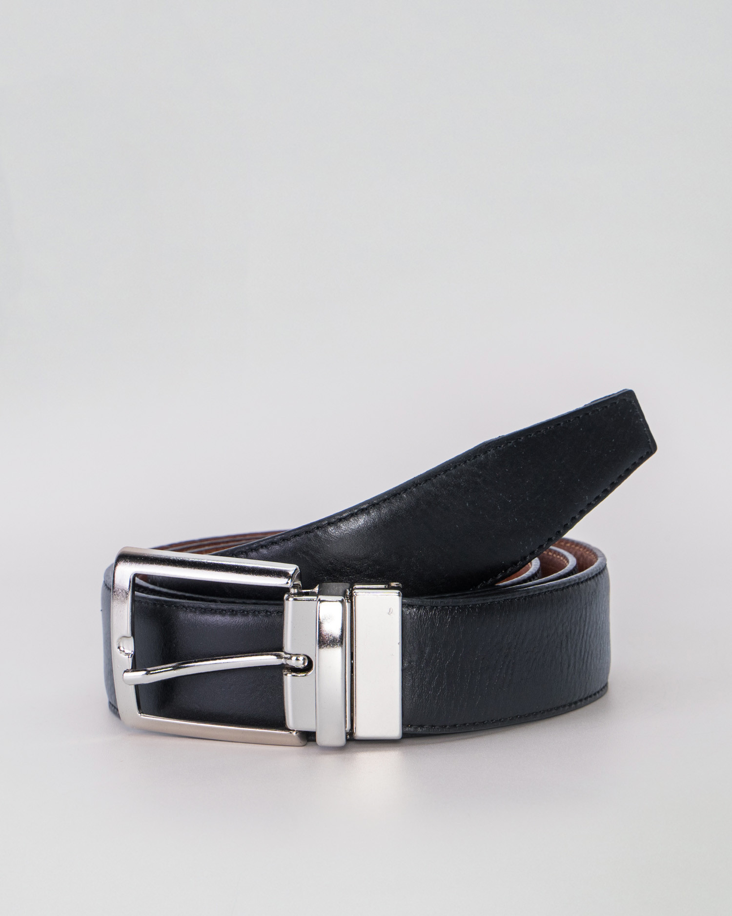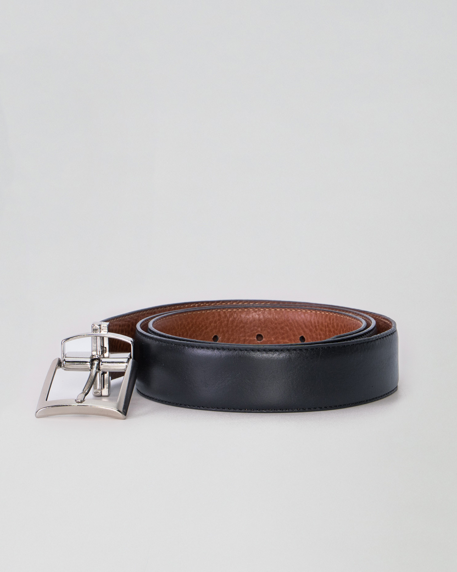 Arrigo - Cintura Reversibile Liscia Ruggine e Nero In Vera Pelle di Vitello Double face