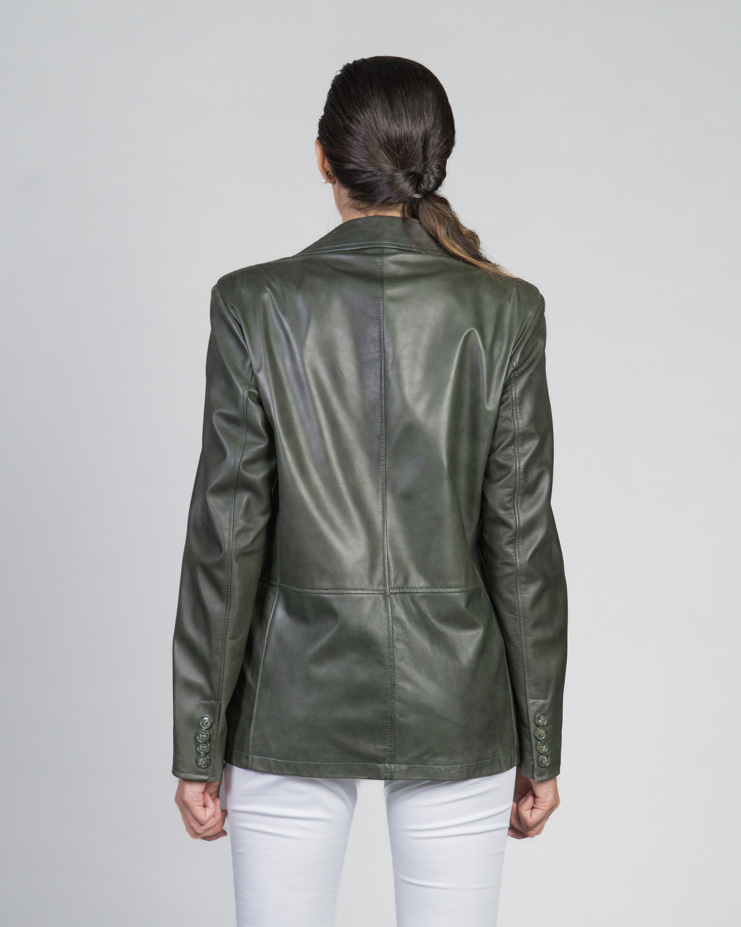 La giacca in pelle Clarissa reinterpreta il classico blazer in chiave moderna, con un taglio oversize pensato per uno stile disinvolto ma sofisticato. Le linee pulite e i revers a lancia donano struttura al capo, rendendolo perfetto per outfit urbani e contemporanei.