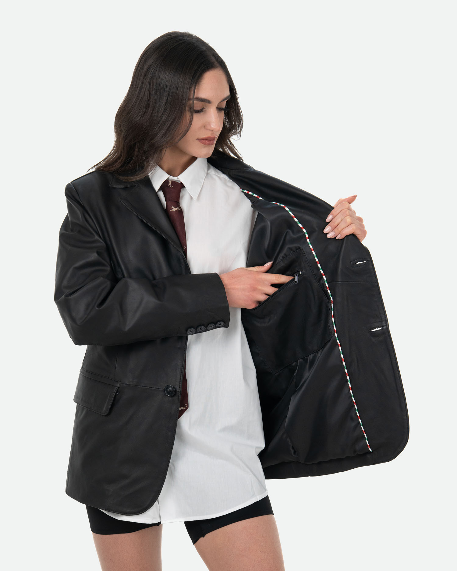 Giacca in pelle da donna dal taglio oversize.