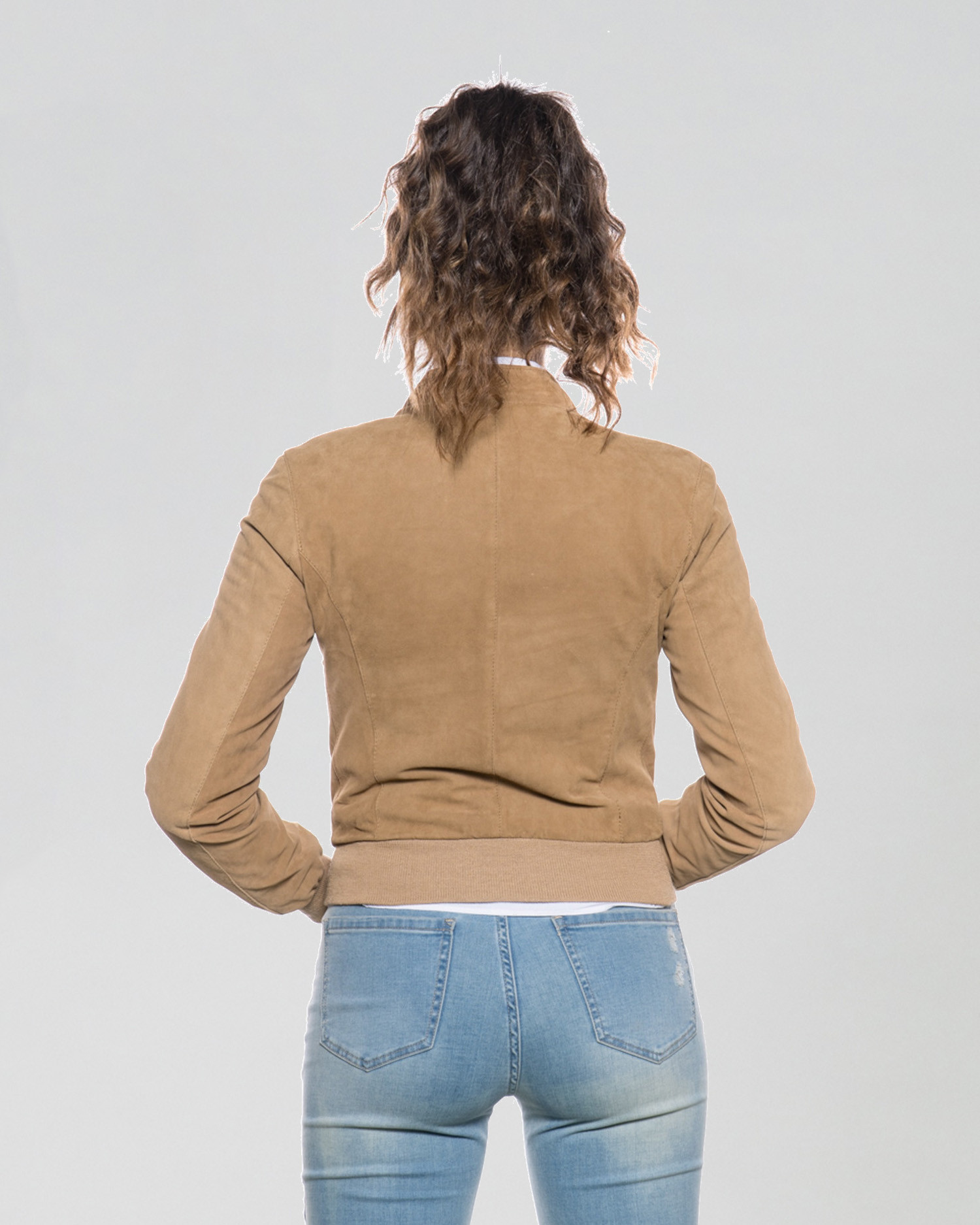 Bomber in camoscio da donna con vestibilità slim.