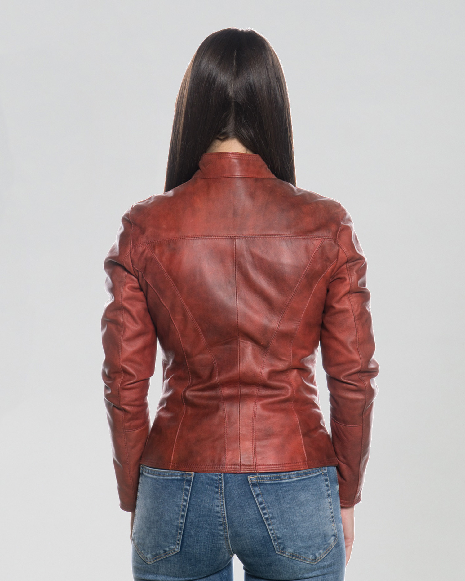 Giacca in pelle da donna con vestibilità slim.