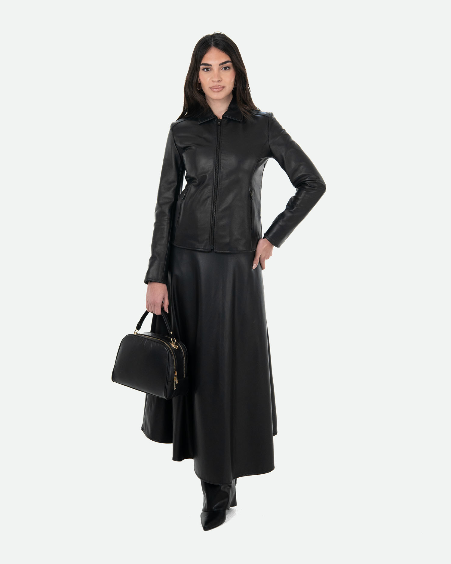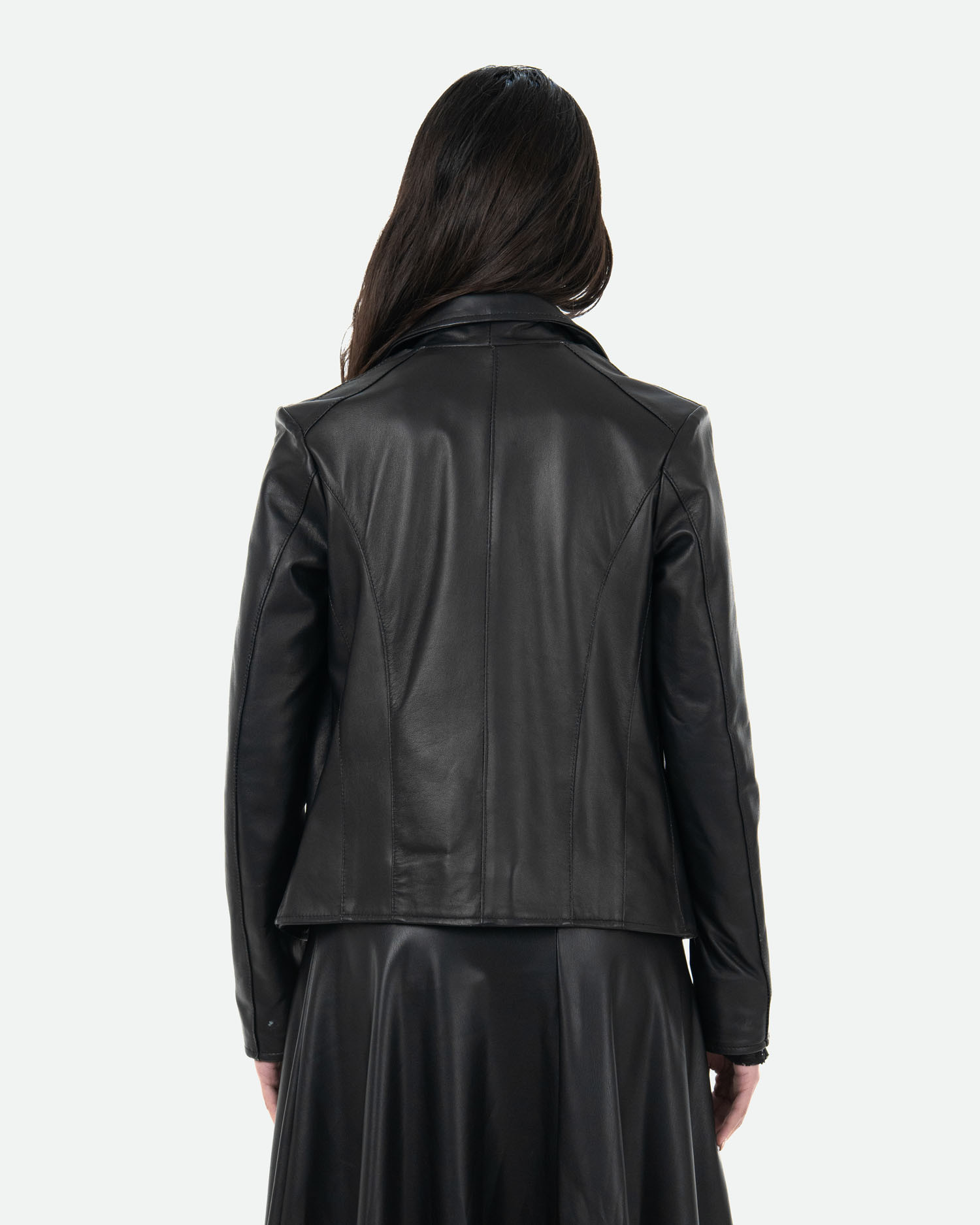 Essenziale ma sofisticata, Eva è una giacca in pelle da donna pensata per completare outfit quotidiani e più ricercati, con un equilibrio perfetto tra comfort e design.