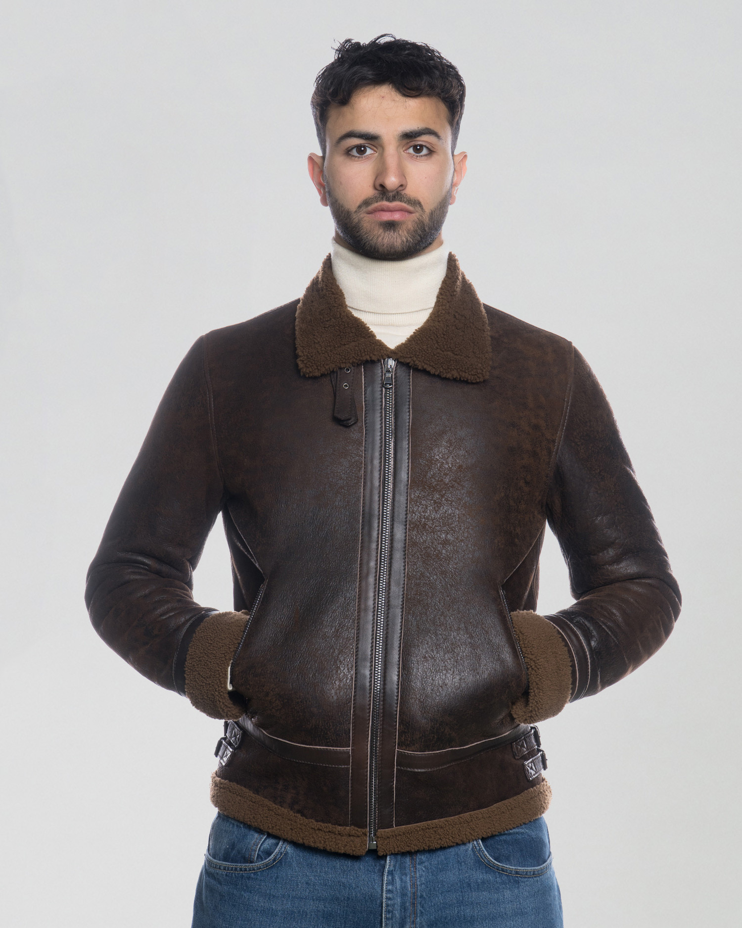 Giacca in vero montone shearling, realizzata artigianalmente con pellame di alta qualità. L’esterno è in pelle, trattata per garantire resistenza agli agenti atmosferici e mantenere la morbidezza nel tempo. L’interno e i dettagli a vista sono in lana shearling naturale, che offre eccellente isolamento termico e comfort. Il modello presenta colletto alto foderato, chiusura frontale con zip metallica, polsini e fondo giacca bordati in shearling per una tenuta ottimale. Le tasche laterali sono integrate con zip invisibili e cuciture rinforzate. Vestibilità regolare, pensata per garantire libertà di movimento. Ideale per climi freddi, questa giacca coniuga funzionalità e stile, ed è adatta sia a contesti urbani che outdoor. Prodotto interamente in Italia, con attenzione ai dettagli e finiture di pregio.