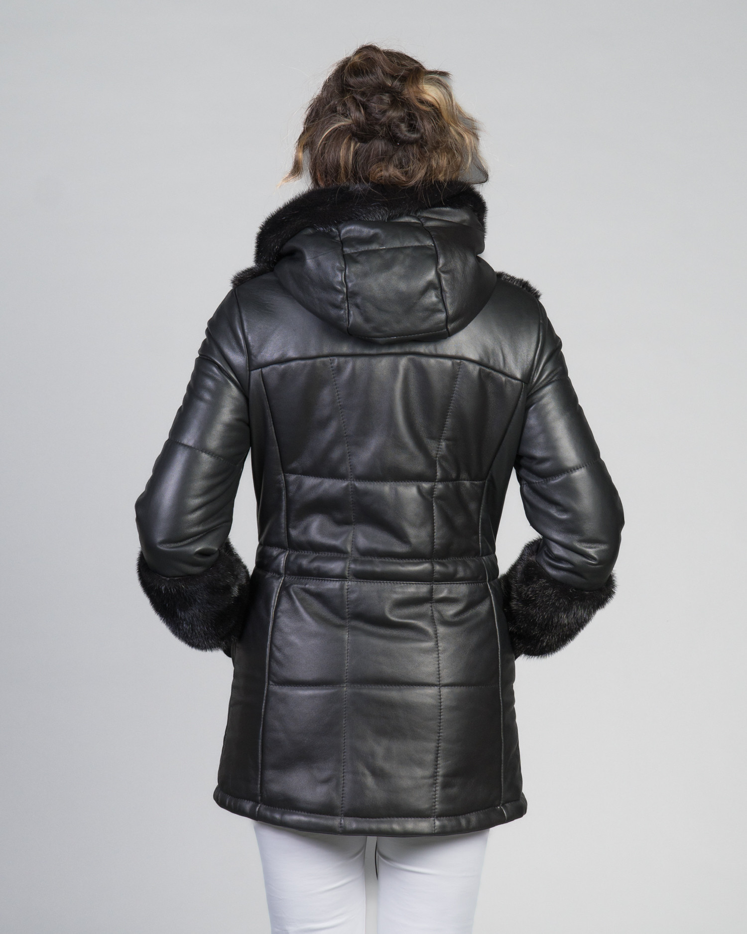 Inserti in pelliccia di visone su cappuccio, maniche e bordo frontale