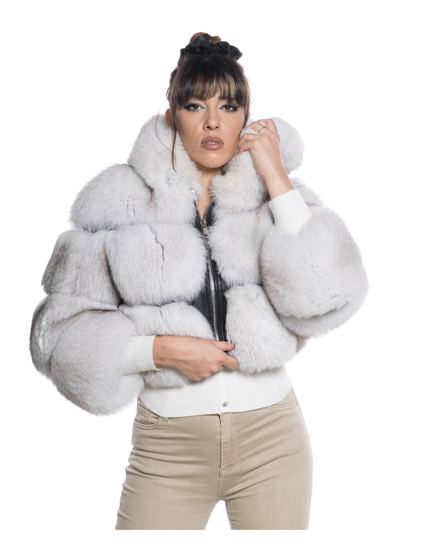 Giacca corta in vera pelliccia di volpe della Groenladia naturale, perfetta per chi è alla ricerca dell'eleganza e raffinatezza.